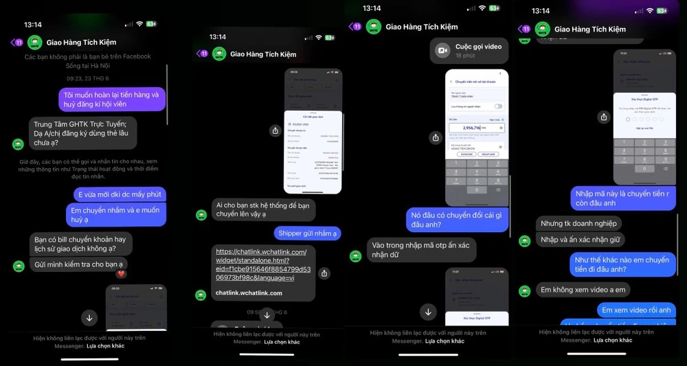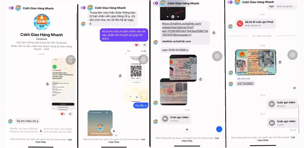 Hình ảnh ghi lại quá trình đối tượng giả mạo “Giao hàng nhanh” lừa bạn Kim Oanh.