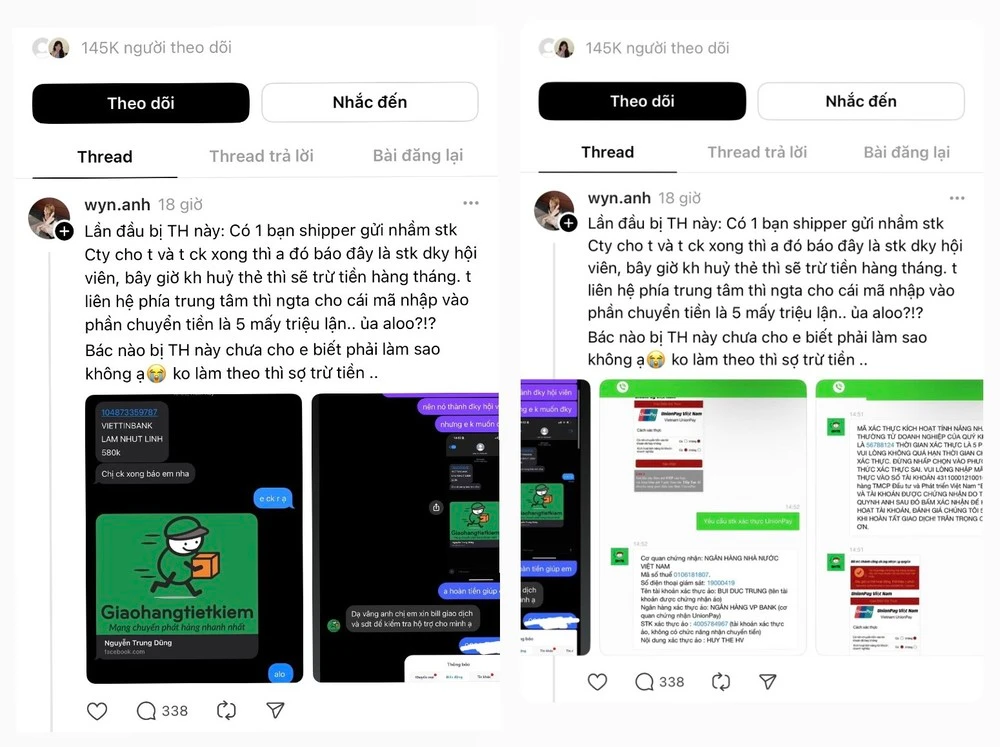 Nhiều người chia sẻ việc bị lừa bởi hình thức này trên các hội nhóm Facebook có tên GHTK và cộng đồng người dùng mạng Threads.
