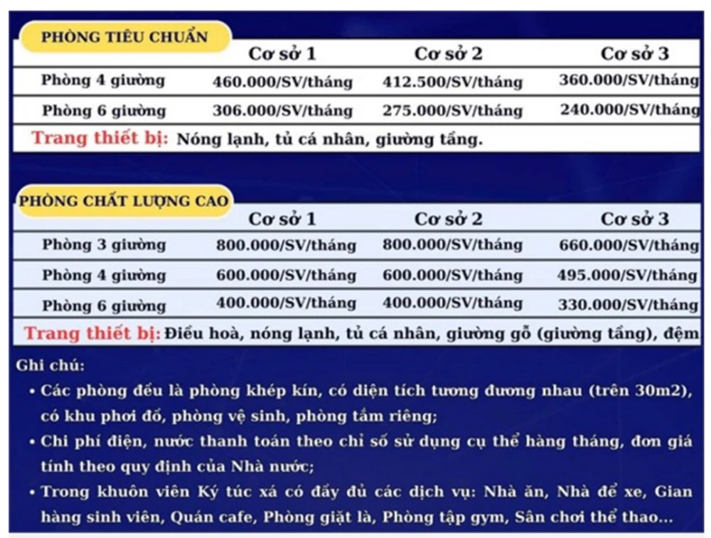 Phí ký túc xá Đại học Công nghiệp Hà Nội.