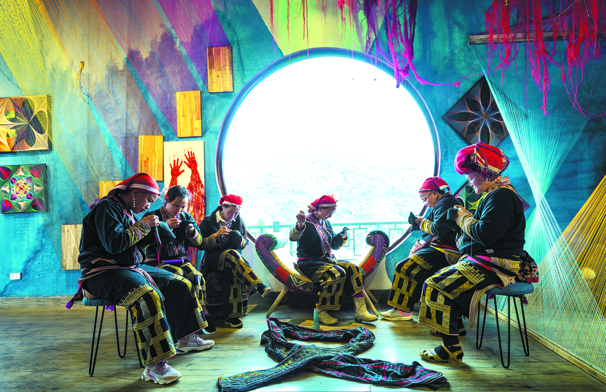 Bà con dân tộc Dao đỏ thêu thổ cẩm cung ứng cho Công ty TNHH Lan Rừng.