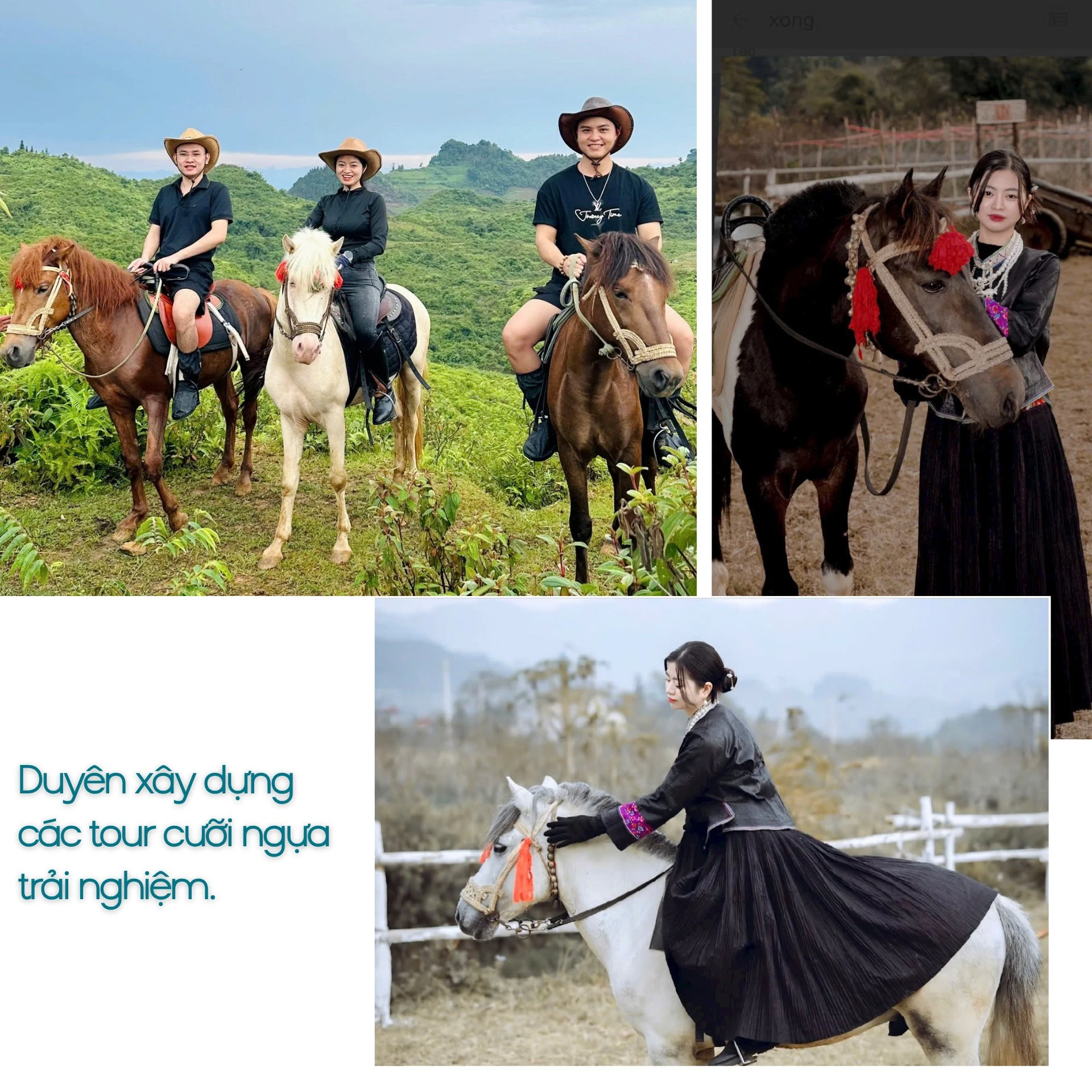 Với mong muốn tạo dấu ấn riêng, tận dụng lợi thế sẵn có tại địa phương, Duyên xây dựng các tour cưỡi ngựa trải nghiệm. Những chú ngựa thồ quen với nếp sống vùng cao được huấn luyện để đưa khách tham quan, khám phá Bắc Hà.