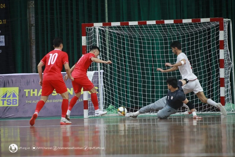 Nhưng khác với những trận đấu trước khi tỏ ra rất hiệu quả trong các pha hãm thành, đội tuyển futsal Việt Nam tỏ ra thiếu duyên trong các dứt điểm. Lý do bởi, thủ môn của Iran chơi quá xuất sắc khi cứu những bàn thua tưởng chừng như không thể cản phá sau các pha dứt điểm như trái phá của đội tuyển futsal Việt Nam.
