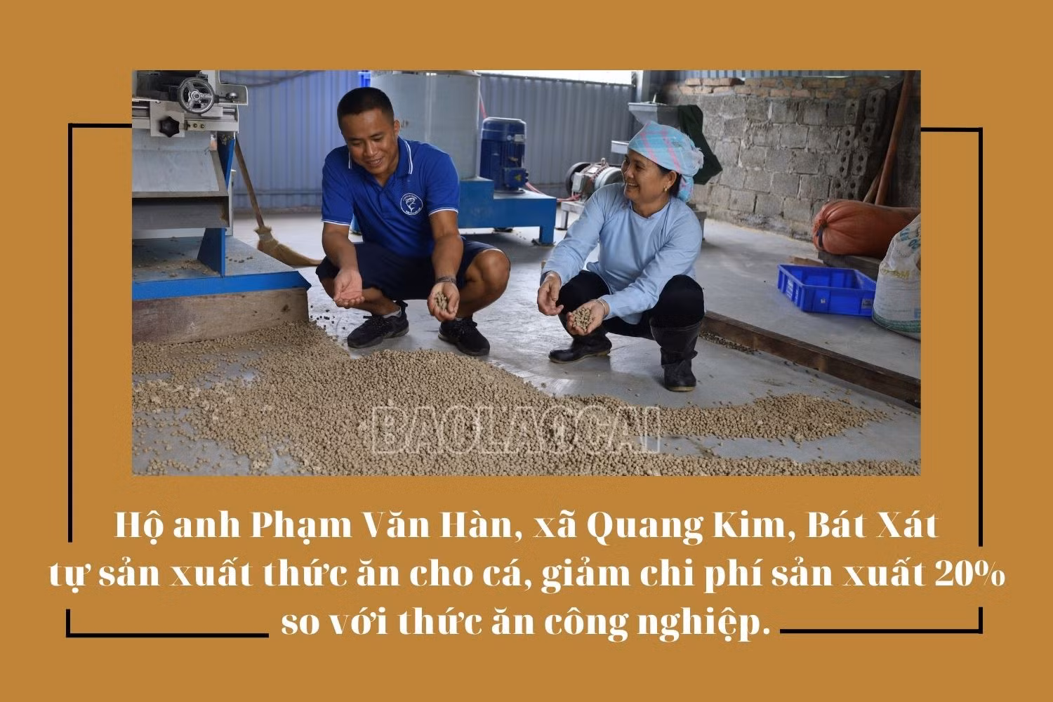 Xã Quang Kim (huyện Bát Xát) có 64 ha nuôi thủy sản tập trung với giá trị sản xuất đạt hơn 600 triệu đồng/ha/năm. Các hộ ở đây chủ yếu nuôi thương phẩm cá rô phi, cá chép, trắm. Để ứng phó với giá thức ăn chăn nuôi cao, nhiều hộ đã đổi mới quy trình nuôi, thay đổi từ sử dụng thức ăn công nghiệp sang thức ăn tự phối trộn. Anh Phạm Văn Hàn, xã Quang Kim cho biết: Tôi tận dụng nguyên liệu sẵn có tại địa phương như ngô hạt, đậu tương, cám gạo, phối trộn thêm bột cá, bột tôm. Tất cả được trộn lẫn, cho vào máy nghiền, sau đó ép thành cám viên. Sử dụng thức ăn hoàn toàn từ nông sản tuy thời gian nuôi kéo dài hơn so với nuôi bằng thức ăn công nghiệp, nhưng đổi lại thịt thơm, ngon, cá chắc thịt, giá bán cao hơn nhiều so với nuôi bằng thức ăn công nghiệp, trong khi tiết kiệm gần 20% chi phí thức ăn.