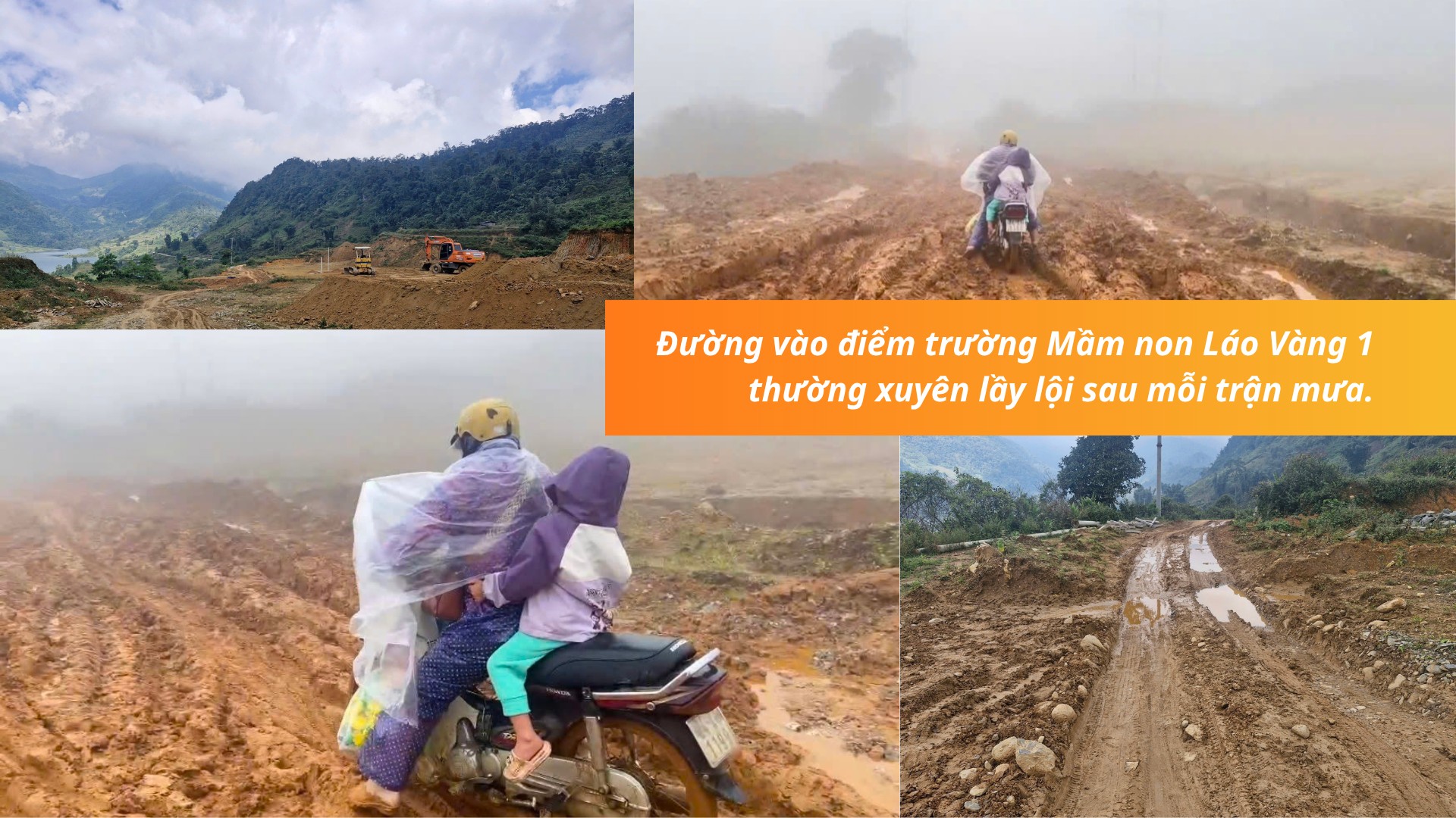 Không chỉ gia đình chị Vàng Tả Mẩy, các hộ dân khác có con học ở điểm trường Mầm non Láo Vàng 1 đều phải vượt qua đoạn đường trơn trượt, lầy lội mới vào được điểm trường. Các cô giáo phải vượt qua chặng đường dốc quanh co hơn 20 km từ điểm trường chính ở trung tâm xã Phìn Ngan cũ vào thôn Láo Vàng, vừa phải gửi lại xe ở nhà dân, đi bộ vào điểm trường dạy học càng vất vả hơn gấp nhiều lần.