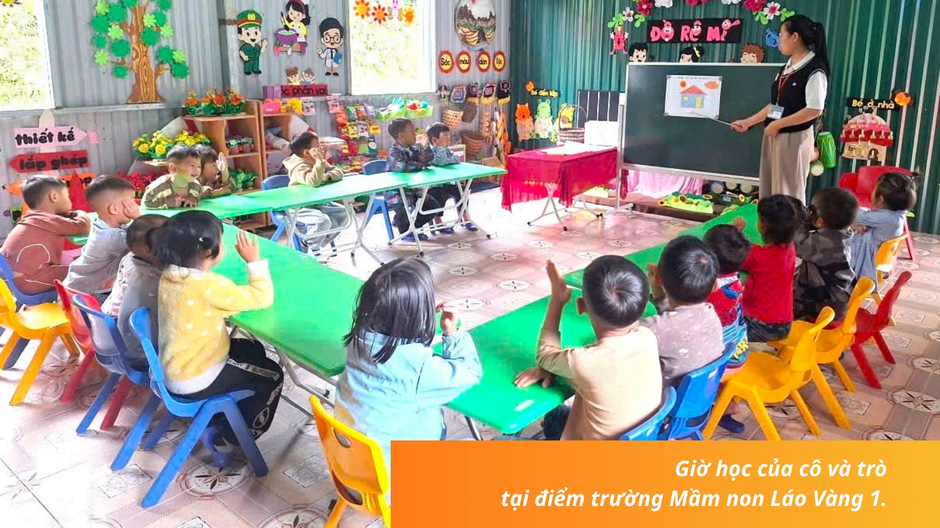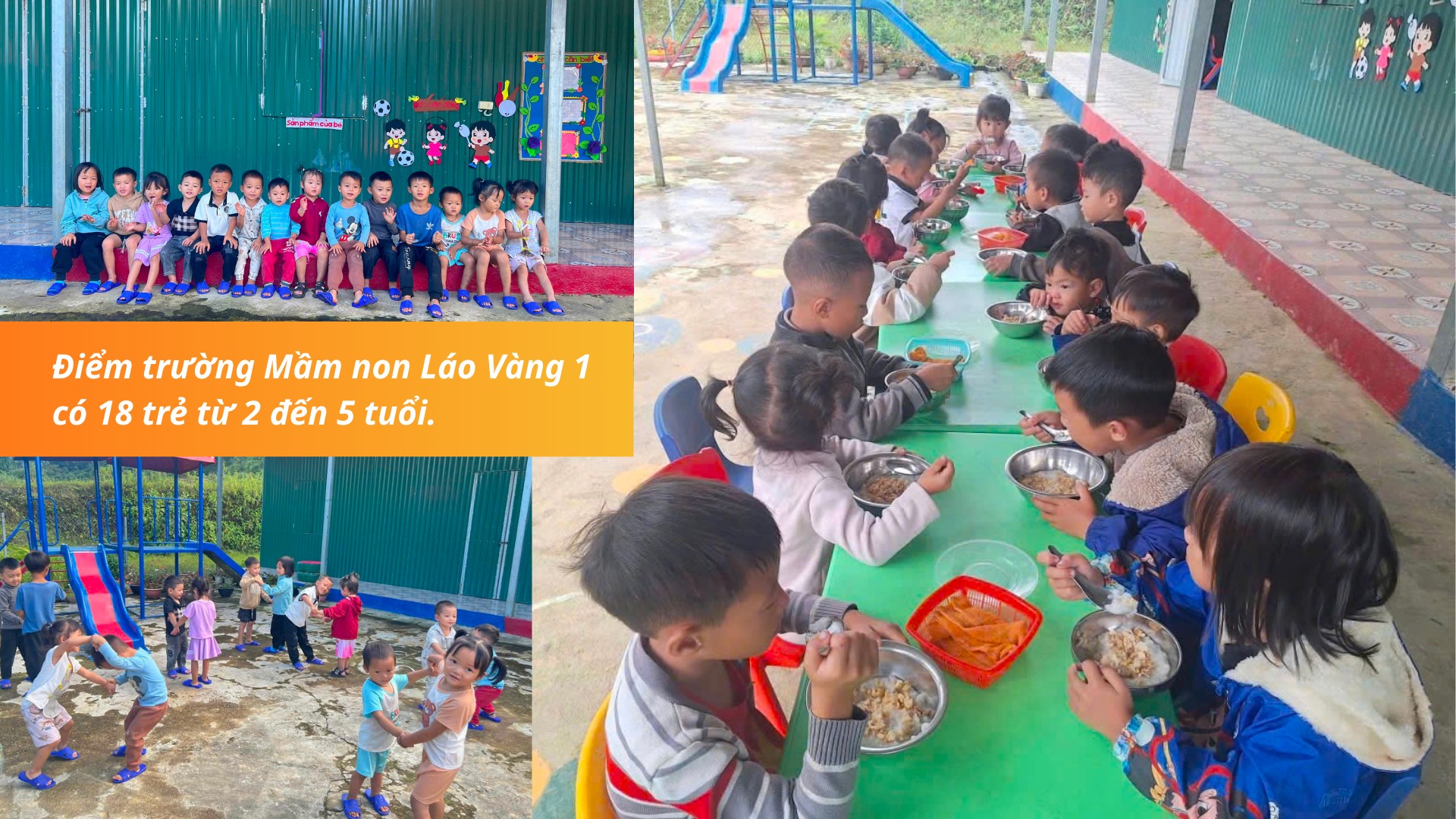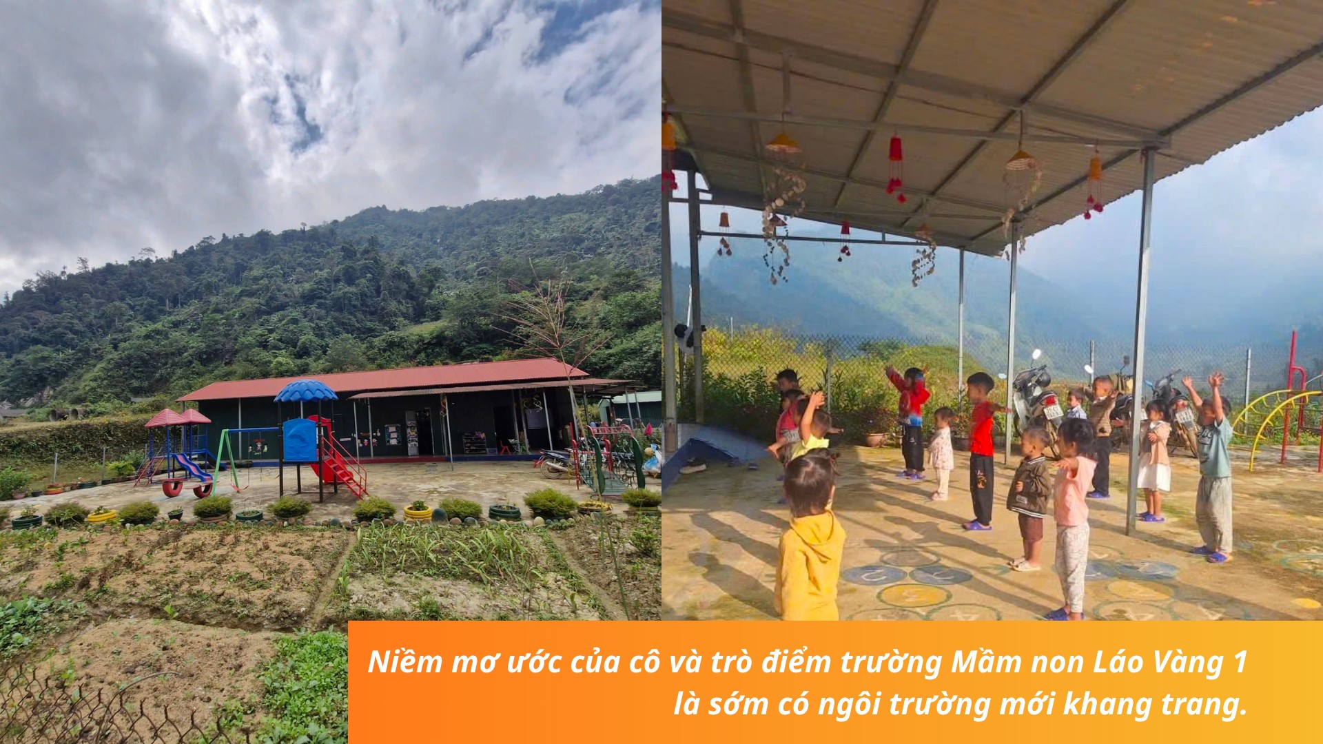 Điểm trường Mầm non Láo Vàng 1 cũ nằm ở giữa thôn nhưng cách đây 5 năm do ảnh hưởng của mưa bão đã xuất hiện nhiều vết nứt, có nguy cơ bị sập. Để đảm bảo an toàn cho cô và trò, xã đã di chuyển điểm trường vào vị trí hiện nay. Tuy vậy, việc dạy và học ở lớp học tạm bằng tôn kéo dài đã mấy năm nên rất khó khăn.