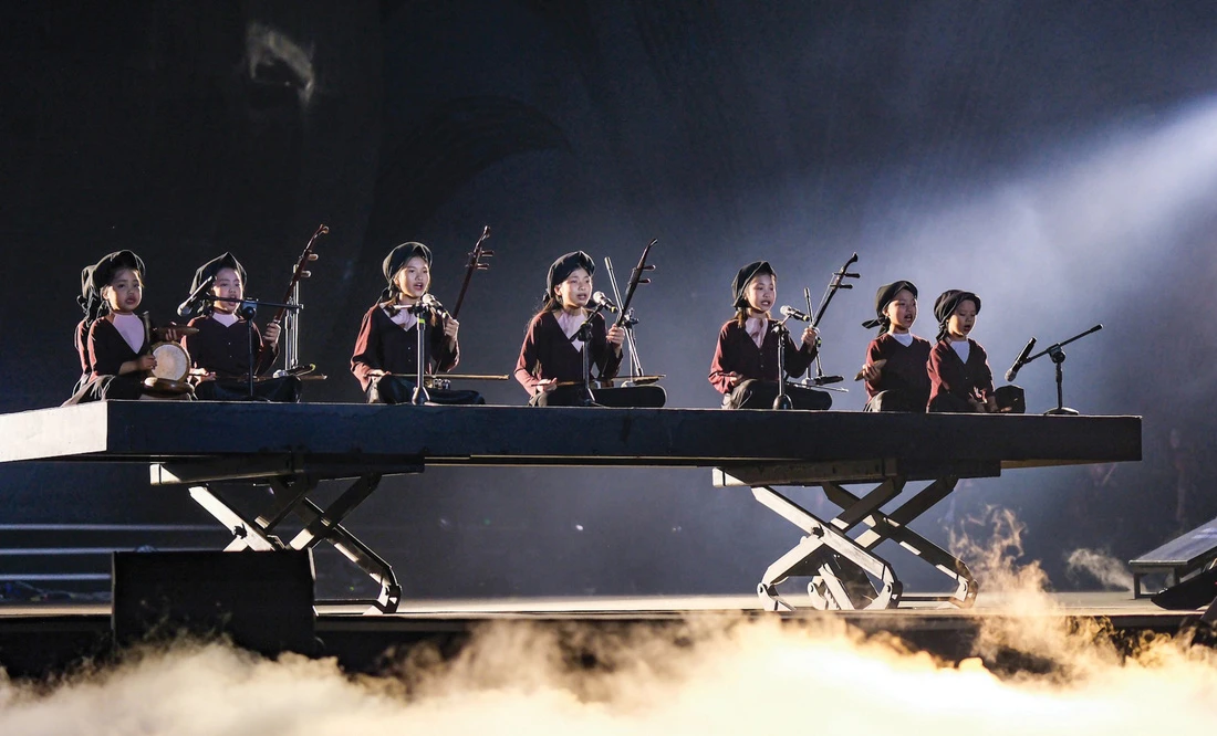 Chiếu xẩm Hà Thị Cầu trong màn mở đầu live concert Chân trời rực rỡ của ca sĩ Hà Anh Tuấn.