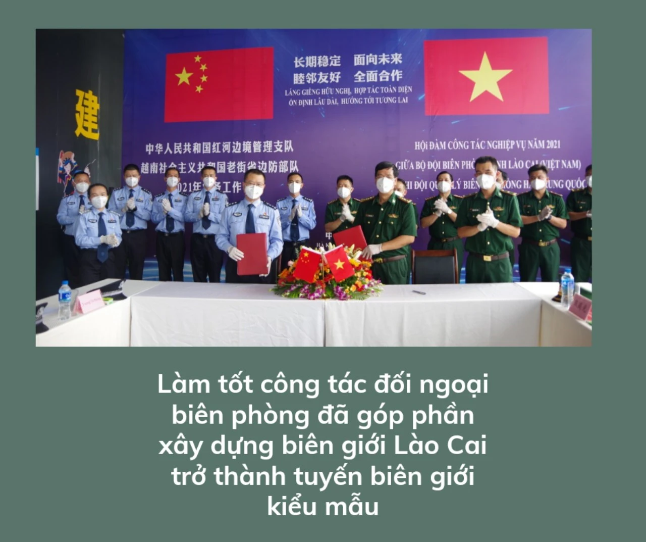 Nhận thức rõ trách nhiệm bảo vệ biên giới là nhiệm vụ chung để bảo vệ lợi ích mỗi quốc gia, bộ đội biên phòng Lào Cai đã phối hợp chặt chẽ với lực lượng chức năng của nước bạn giải quyết tốt các vấn đề nảy sinh ở khu vực biên giới. Công tác đối ngoại biên phòng được thực hiện thường xuyên, liên tục với nhiều hoạt động thiết thực giữa lực lượng bảo vệ biên giới 2 bên, như diễn tập chống khủng bố, tuần tra liên hợp, tuần tra song phương, đối thoại, tọa đàm duy trì thực hiện nghiêm các hiệp định, quy chế biên giới, cửa khẩu; bình chọn 20 “Sứ giả hữu nghị” và “Đảng viên Đảng Cộng sản tiêu biểu trong công tác quản lý, kiểm soát tại cửa khẩu”. 2 bên đã tổ chức kết nghĩa 6 cặp - cụm dân cư 2 bên biên giới và các cặp đồn - trạm, đại đội, tiểu đoàn hữu nghị. Làm tốt công tác đối ngoại biên phòng đã góp phần xây dựng biên giới Lào Cai trở thành tuyến biên giới kiểu mẫu phía Bắc.