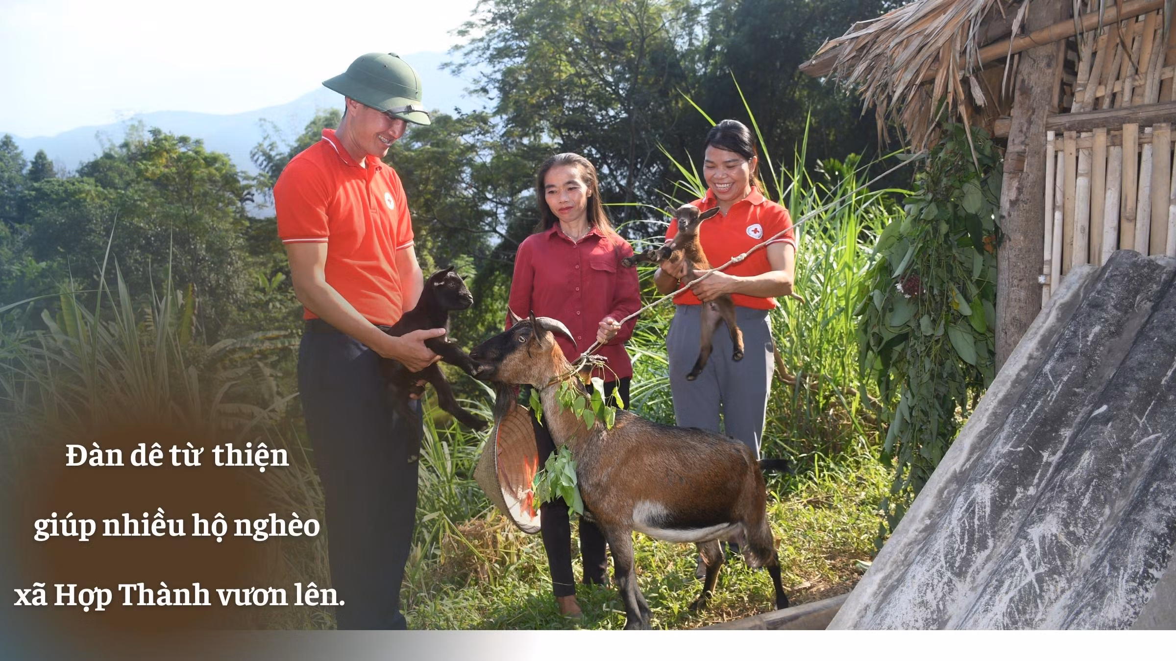 Từ năm 2021 đến nay, xã Hợp Thành có 16 gia đình được tặng dê giống với tổng số 75 con. Định kỳ 3 tháng 1 lần, cán bộ Hội Chữ thập đỏ xã đến thăm, nắm tình hình đời sống, đồng thời động viên người dân chăm sóc vật nuôi, tái đàn hiệu quả.