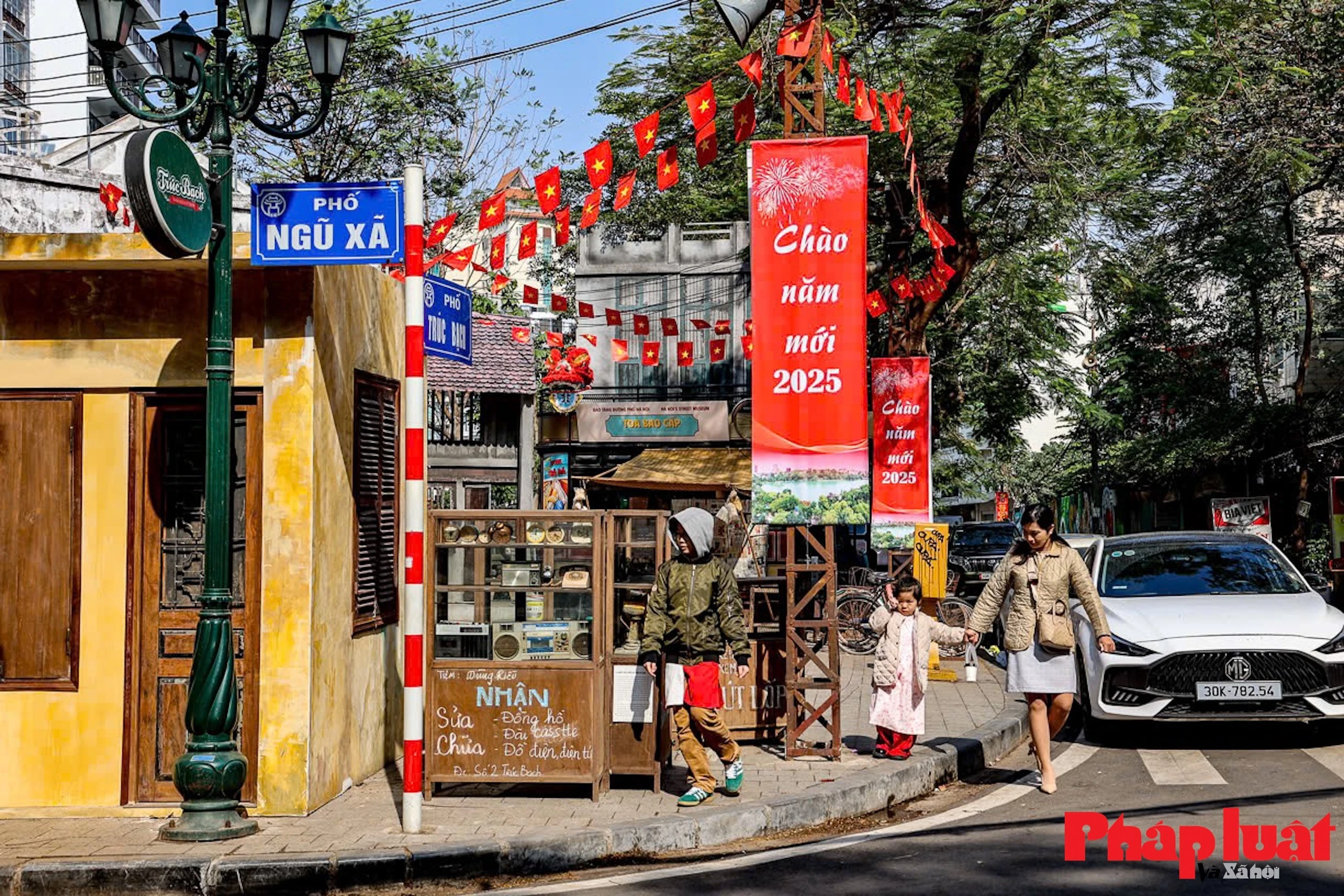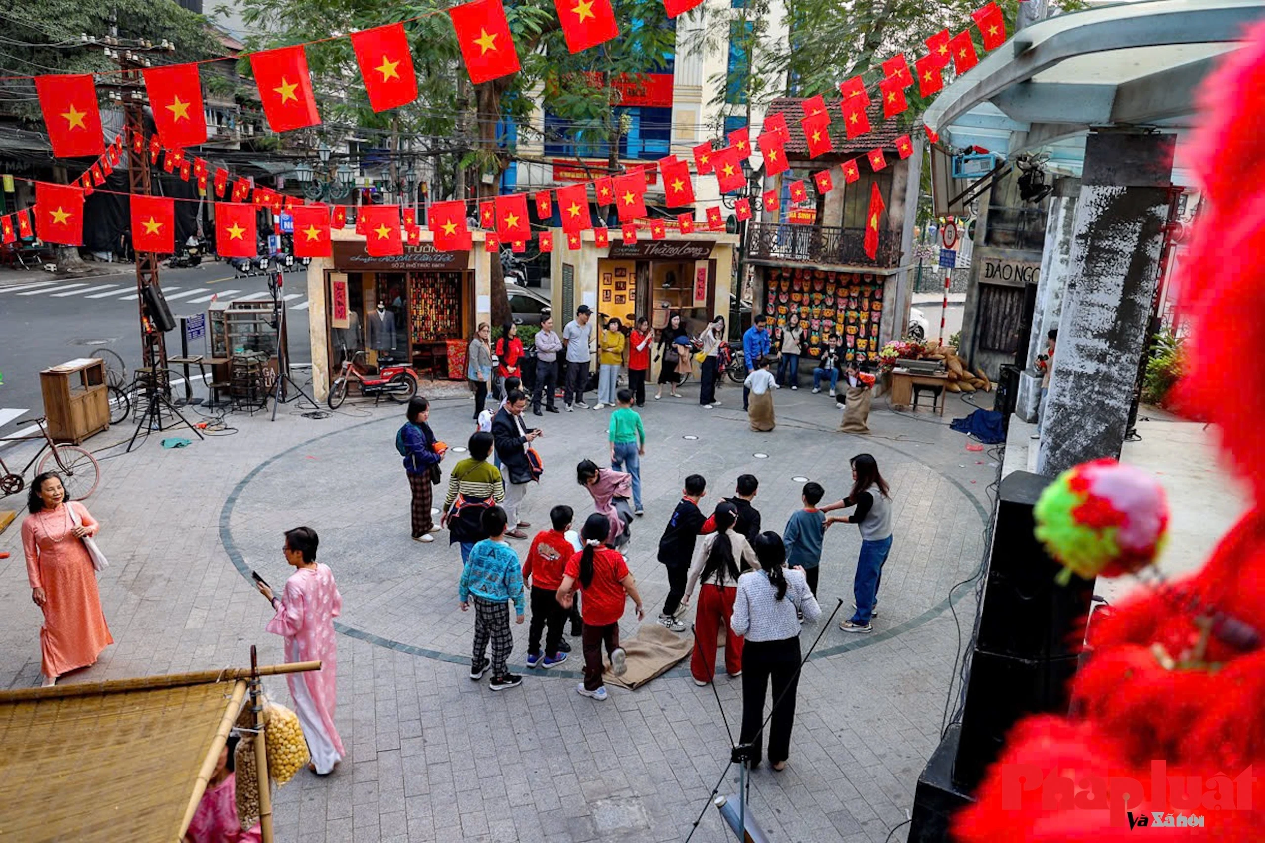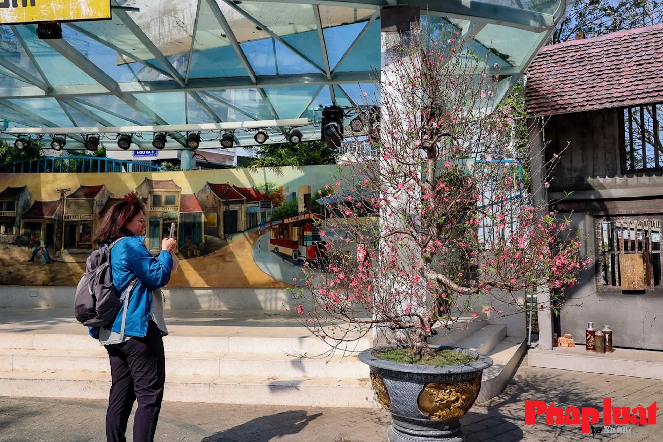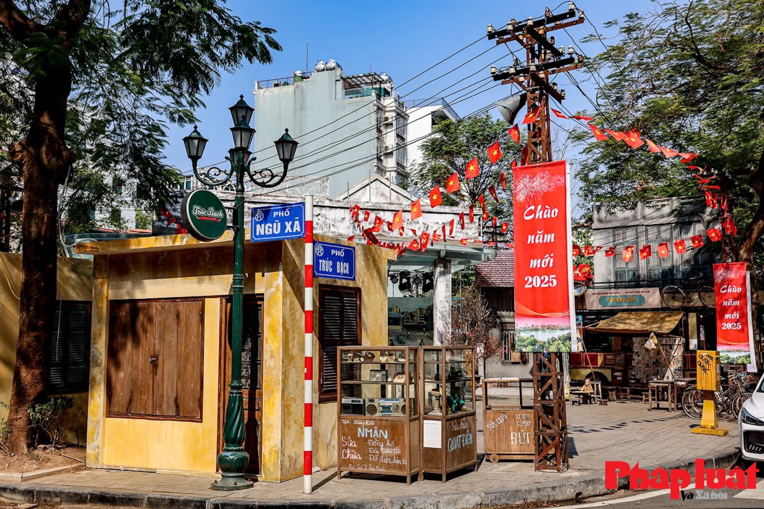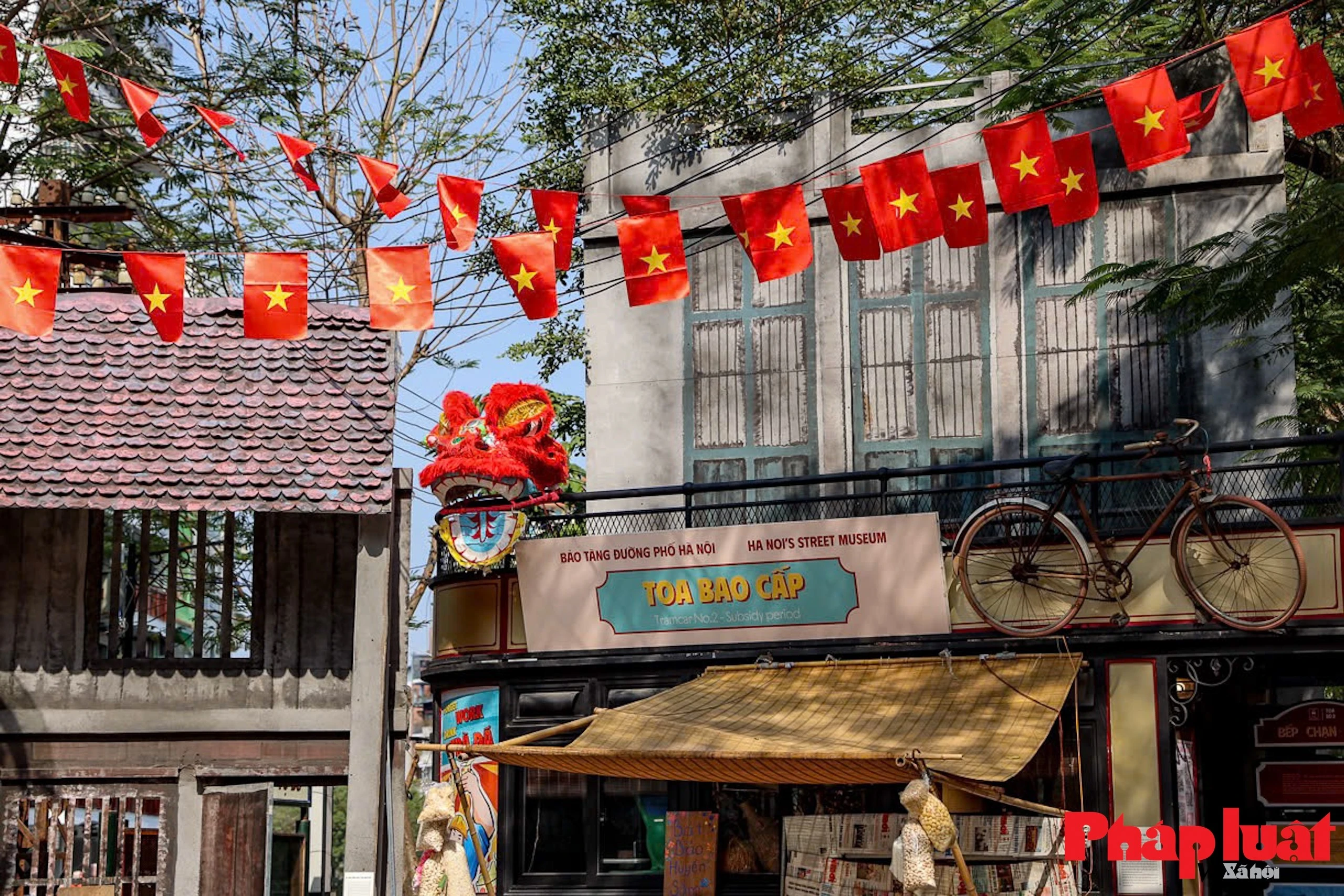 Khắp không gian đều được bao trùm bởi sắc Tết từ các sắc hoa đặc trưng xưa tới các biển hiệu, pano chào mừng...