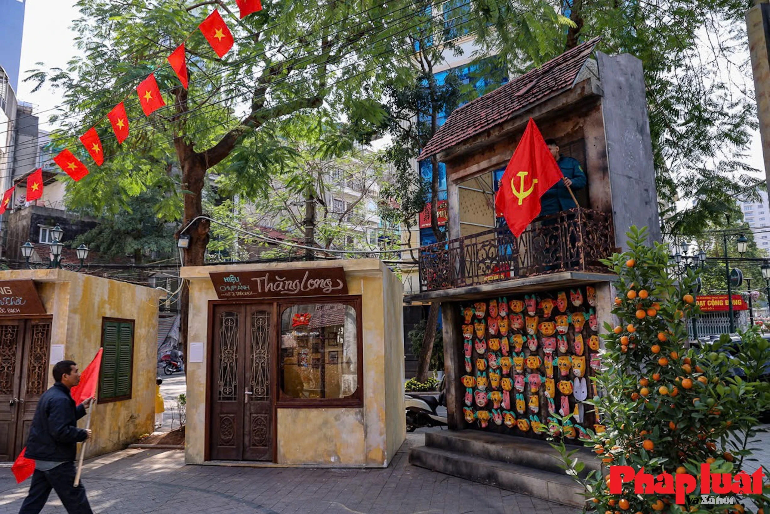 Tết xưa trang trí không quá cầu kì, chỉ có cây đào, cây quất cùng với lá cờ Tổ quốc treo trước ngõ.