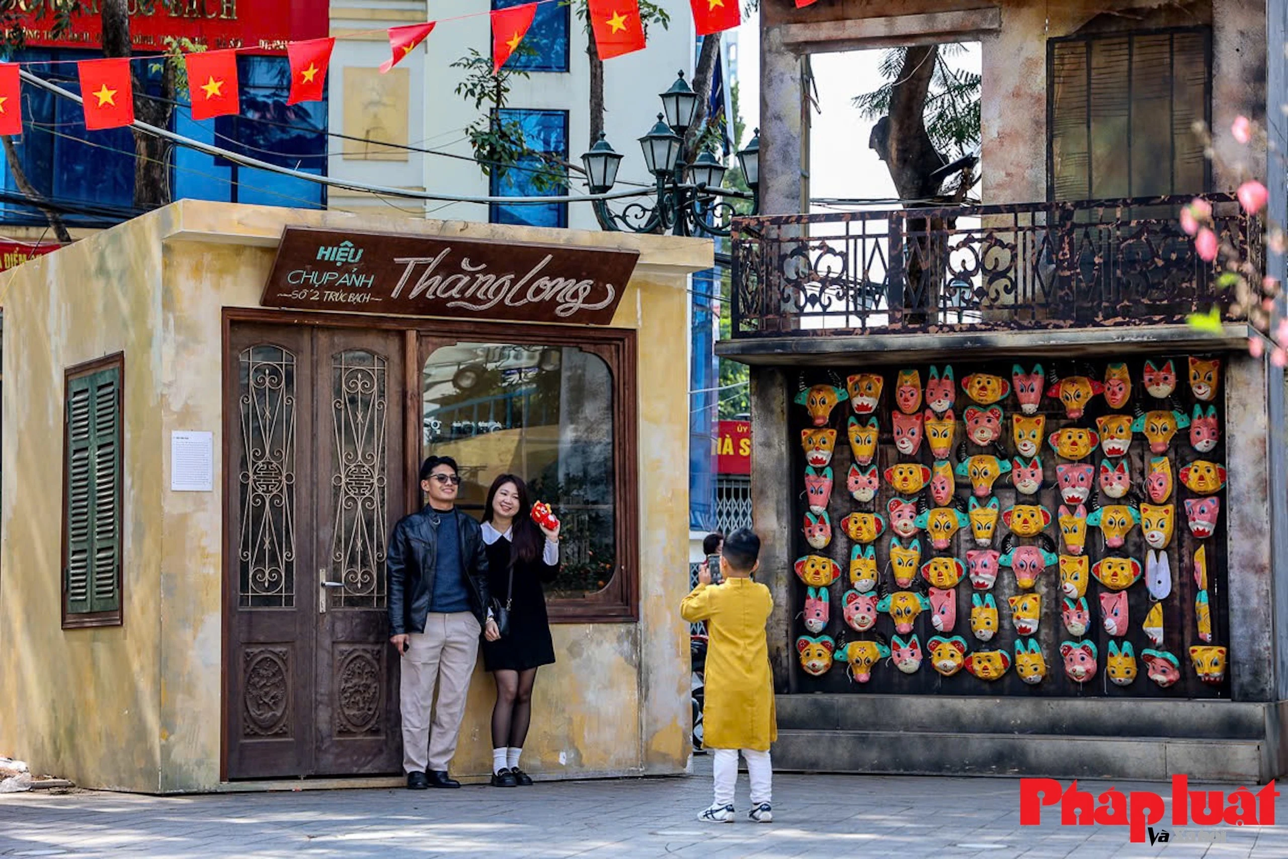 Năm nay, khu vực Đảo Ngọc (Ngũ Xã) được trang trí theo không gian Tết xưa của Hà Nội khiến nhiều người thích thú.