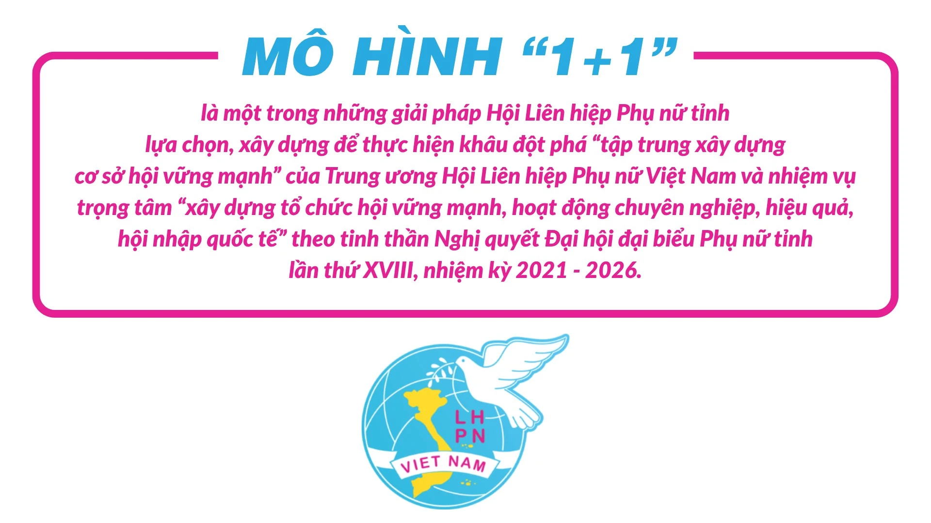 Được triển khai từ năm 2024, theo chỉ đạo của Hội Liên hiệp Phụ nữ tỉnh, mô hình “1+1” được các cấp hội triển khai hiệu quả gắn với các mô hình của phong trào “Dân vận khéo”, các phong trào thi đua yêu nước, cuộc vận động. Các cấp hội đã thành lập được trên 110 mô hình “1+1” thu hút gần 3.500 hội viên, phụ nữ tham gia. Tùy vào tình hình của địa phương, mỗi tổ chức hội lựa chọn nội dung cụ thể. Trong xây dựng tổ chức Hội vững mạnh, tham gia xây dựng Đảng, hệ thống chính trị, nhiều chi hội thành lập mô hình mỗi hội viên giới thiệu được ít nhất một phụ nữ tham gia tổ chức hội, một chi hội thuận lợi giúp đỡ một chi hội khó khăn, một nữ đảng viên giới thiệu một nữ quần chúng ưu tú vào Đảng. Trong phát triển kinh tế có các mô hình một chi hội giúp một phụ nữ thoát nghèo bền vững; một phụ nữ khởi nghiệp giúp một phụ nữ thoát nghèo. Lĩnh vực văn hóa, xã hội có mô hình một chi hội giúp một chi hội có một hoạt động duy trì gìn giữ văn hóa truyền thống, phát huy bản sắc văn hóa dân tộc; một cơ sở hội giúp một chi hội duy trì phong trào dân vũ thể thao; một cơ sở hội nhận đỡ đầu một trẻ em có hoàn cảnh đặc biệt khó khăn…