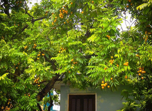 | Những quả sấu chín mọng, vàng óng ả như gom hết cả ánh nắng từ đầu hè vào trong vỏ. |
