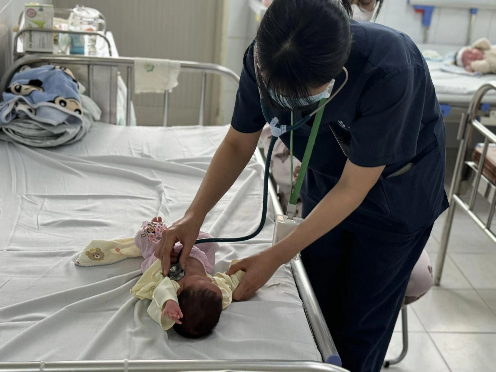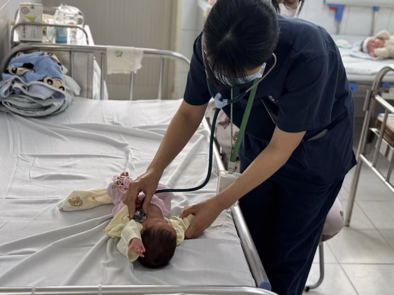Điều trị ca mắc ho gà tại Bệnh viện Nhi Trung ương. Ảnh: Tạ Nguyên