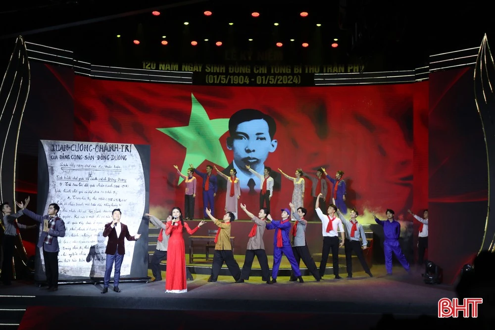 Tiếp đó, đại biểu tham dự được thưởng thức chương trình nghệ thuật đặc sắc có chủ đề “Hãy giữ vững chí khí chiến đấu” tái hiện những dấu mốc quan trọng trong suốt cuộc đời hy sinh, cống hiến của Tổng Bí thư Trần Phú.