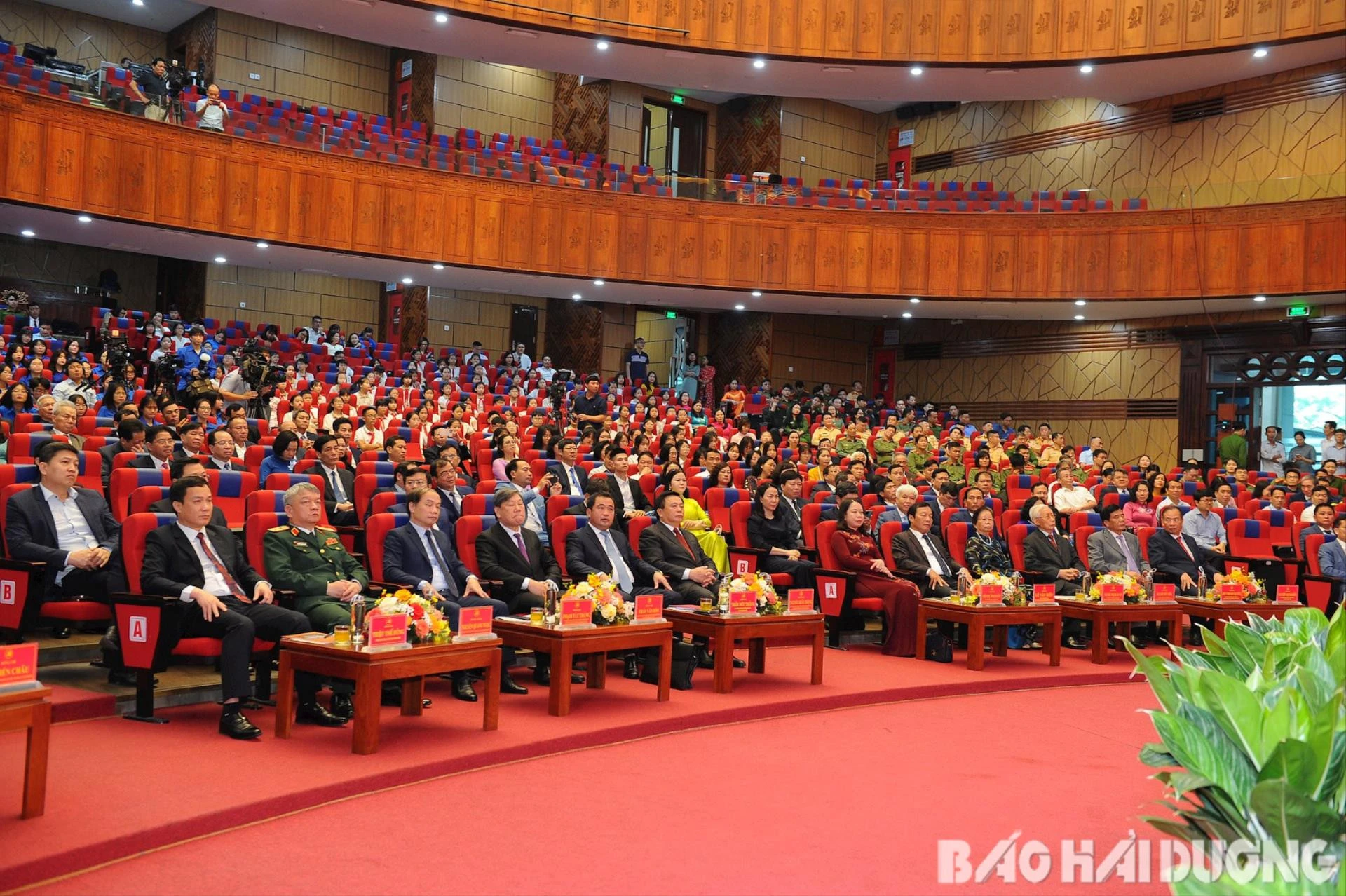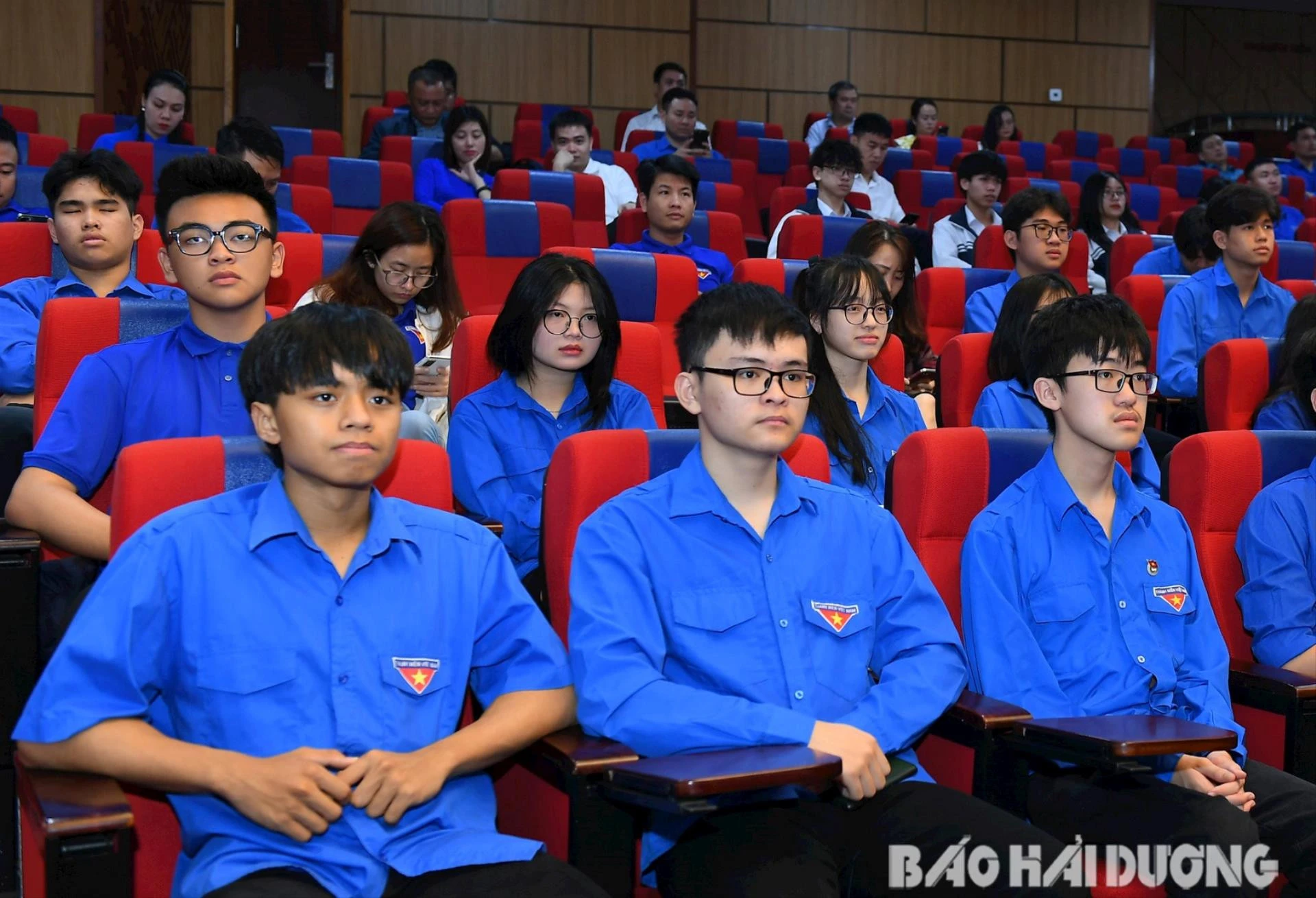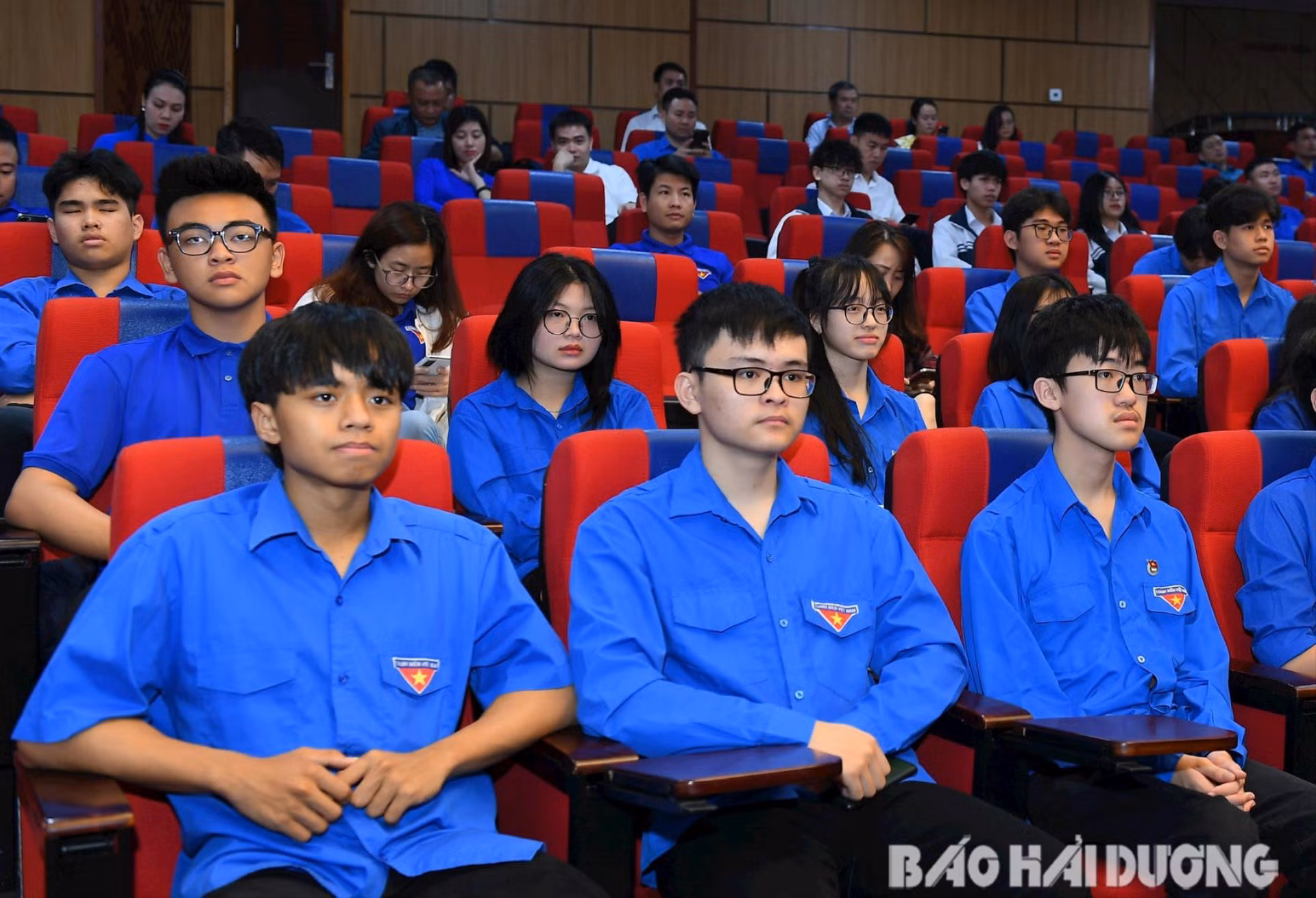 Các đại biểu đại diện tuổi trẻ Hải Dương dự buổi Lễ kỷ niệm 120 năm ngày sinh đồng chí Nguyễn Lương Bằng.