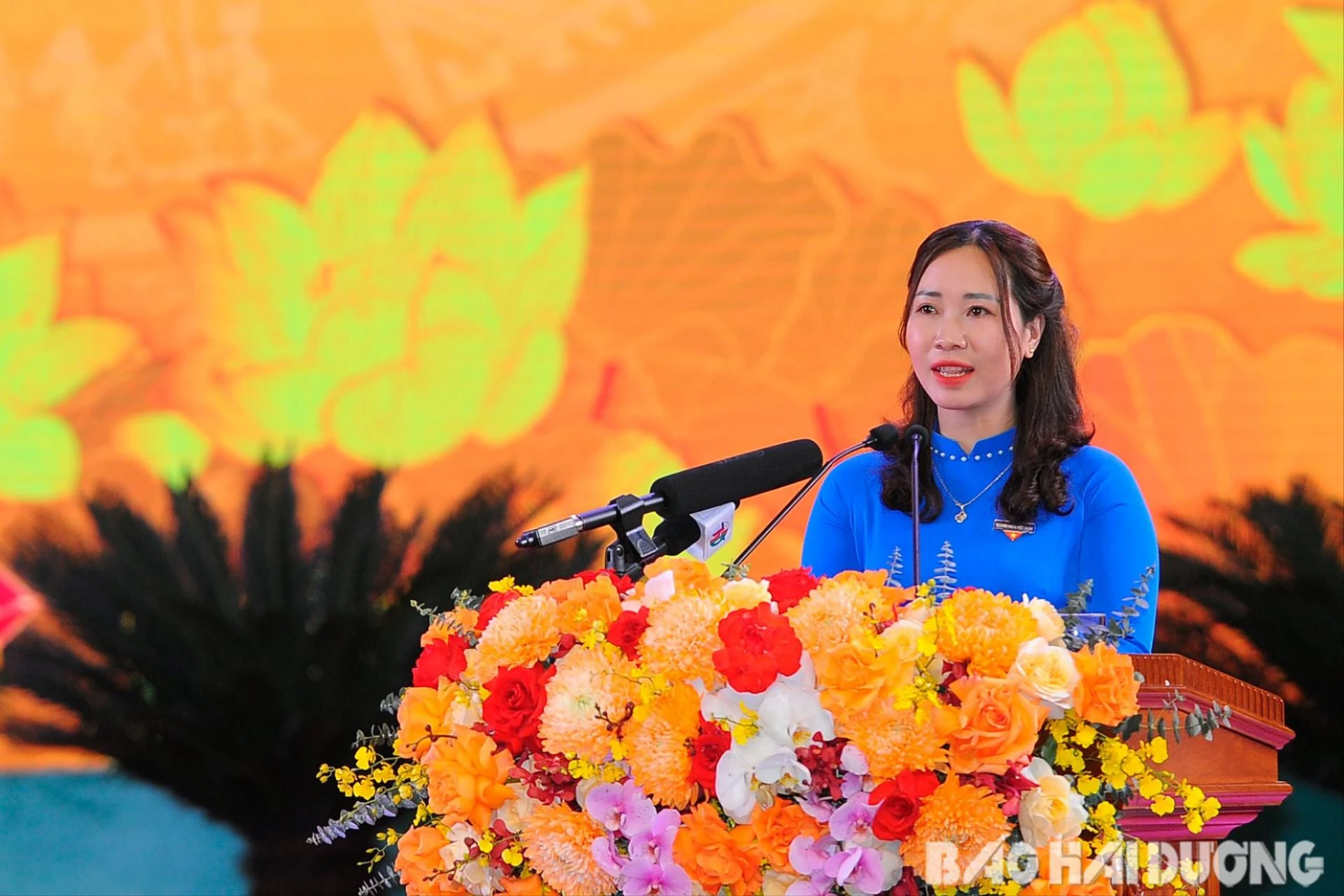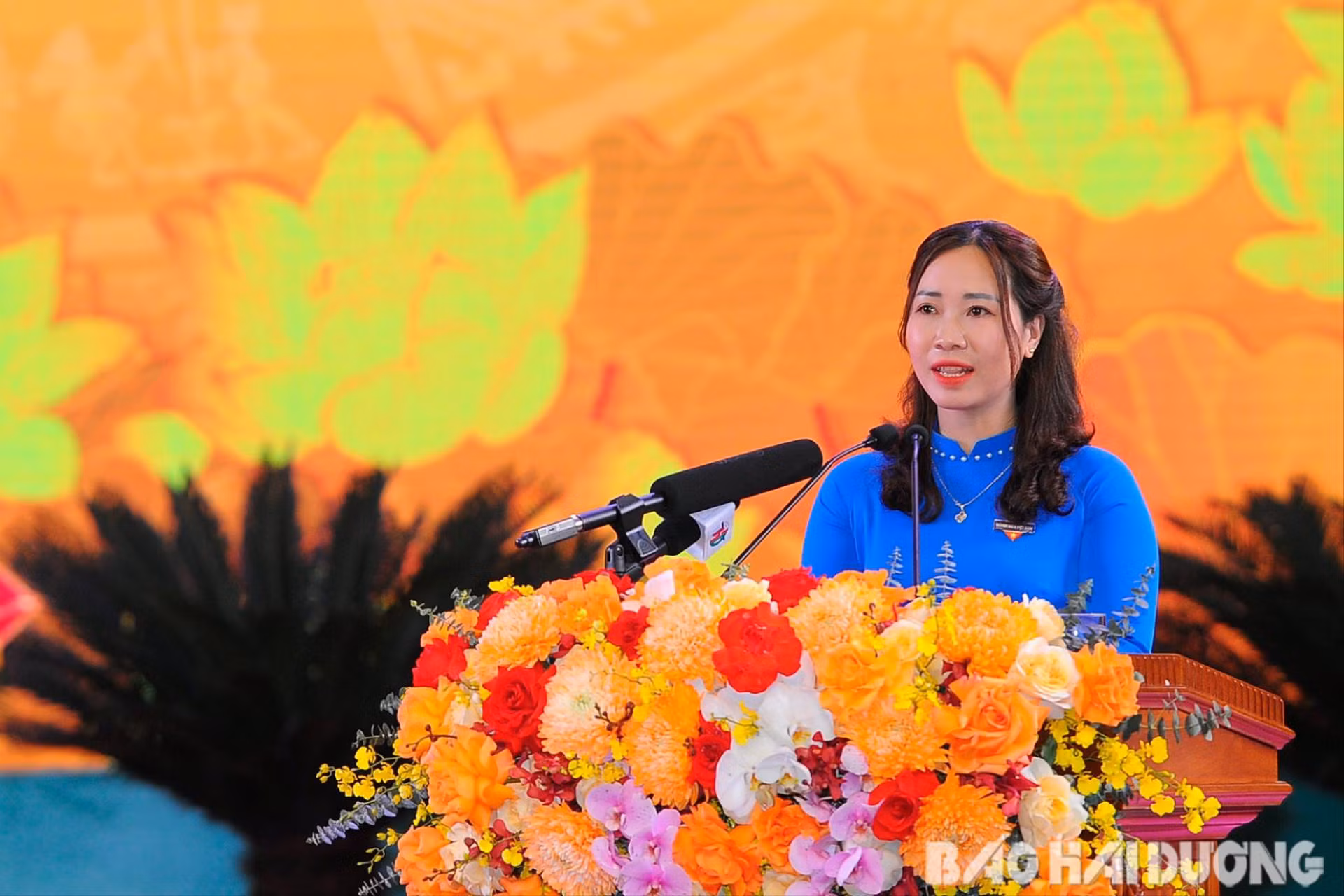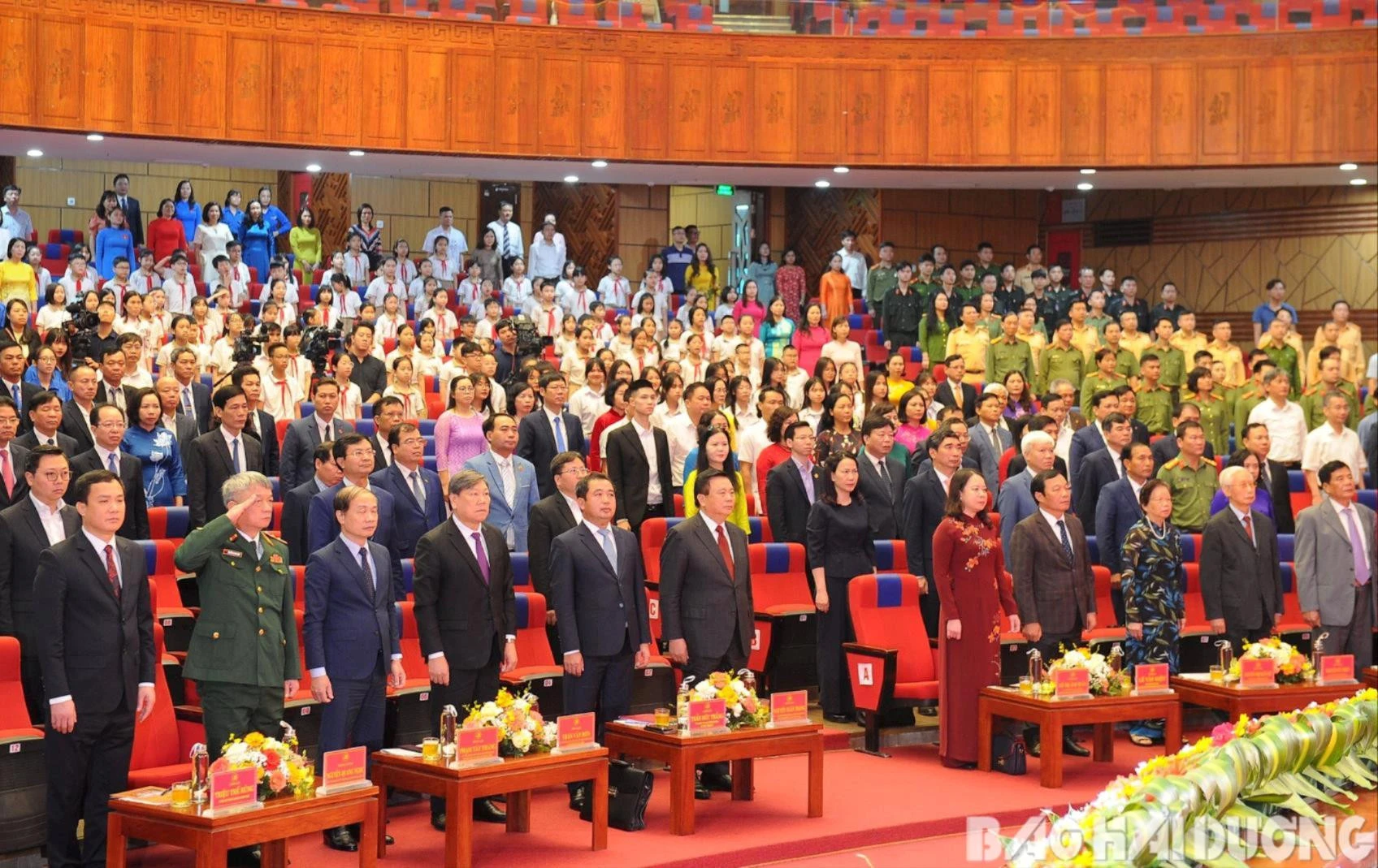 Các đại biểu đại diện tuổi trẻ Hải Dương dự buổi Lễ kỷ niệm 120 năm ngày sinh đồng chí Nguyễn Lương Bằng.