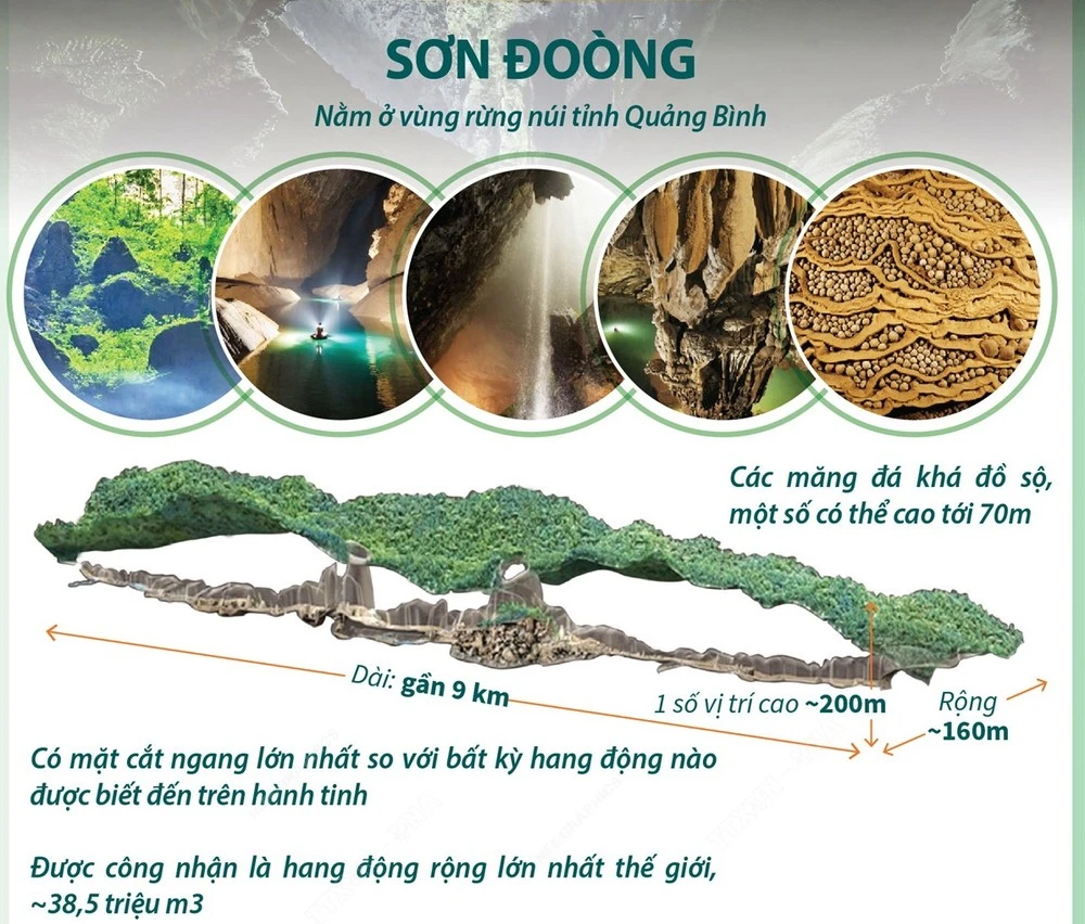 Trong số 10 hang động đẹp nhất thế giới do Tạp chí chuyên về du lịch nổi tiếng Time Out của Anh bình chọn có hang Sơn Đoòng của Việt Nam.