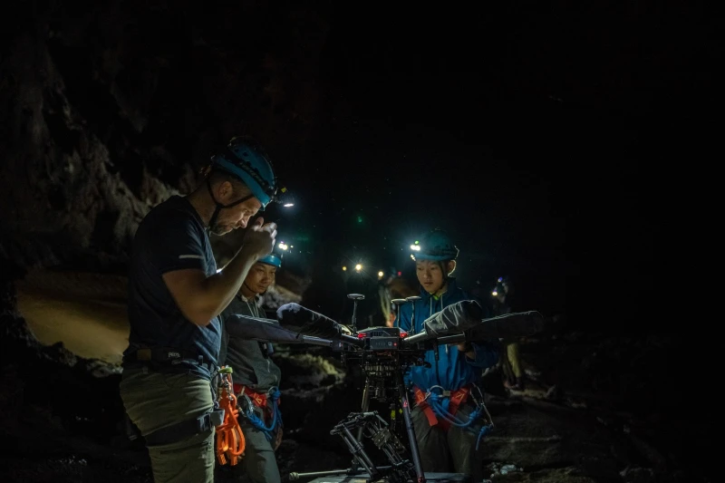 Đoàn làm phim cùng đội ngũ hỗ trợ đã phải mang theo hơn 1 tấn thiết bị băng rừng đến các địa điểm trong hang động.