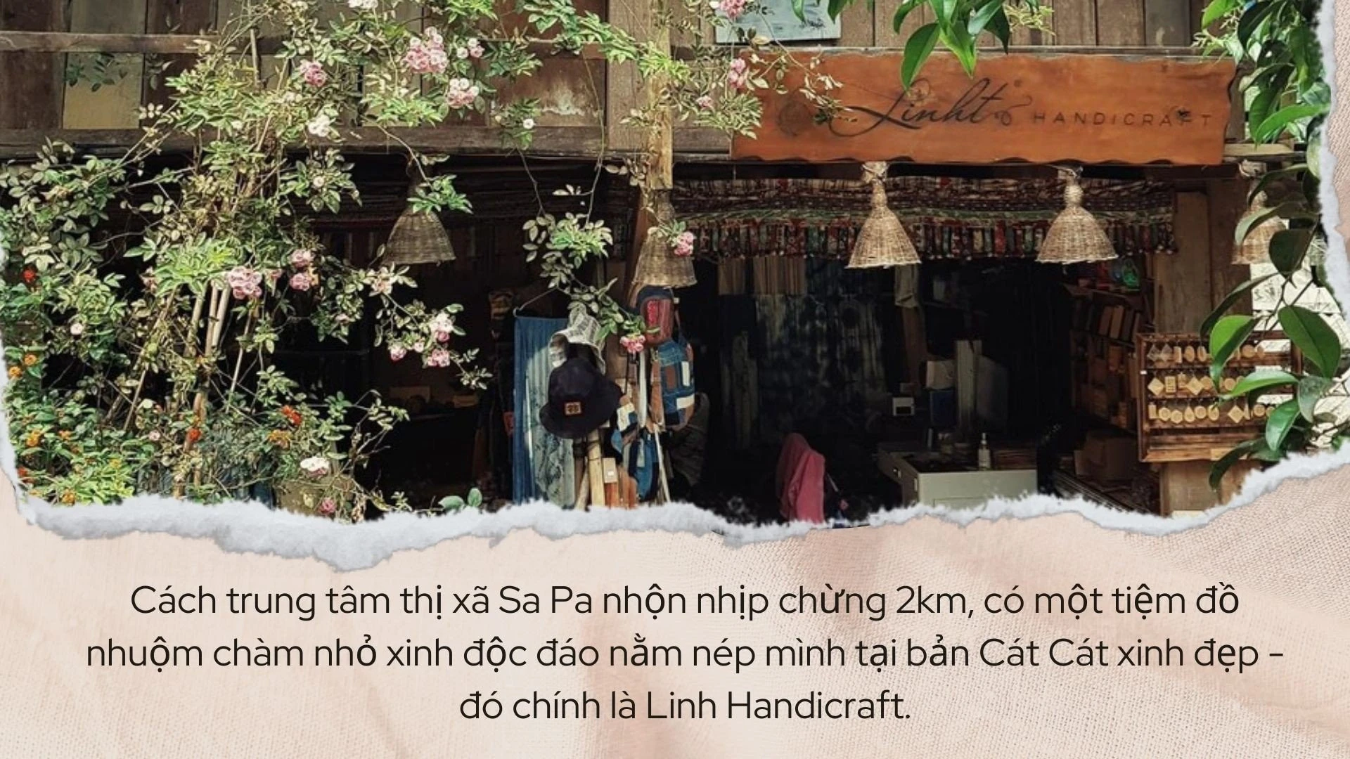 Linh Handicraft là tiệm đồ nhuộm chàm của vợ chồng họa sỹ Phạm Phan Hoàng Linh. “Tôi và chồng là người Quảng Nam, cùng học Trường Đại học Huế, Khoa Mỹ thuật nhưng cuối cùng cả hai lại chọn Sa Pa lập nghiệp. Sau hơn 10 năm gắn bó, với tôi, Sa Pa thật phù hợp để hiện thực hóa ước mơ” - Linh bộc bạch.