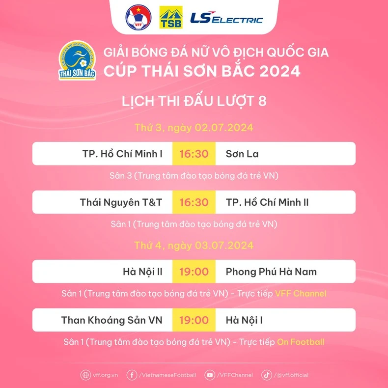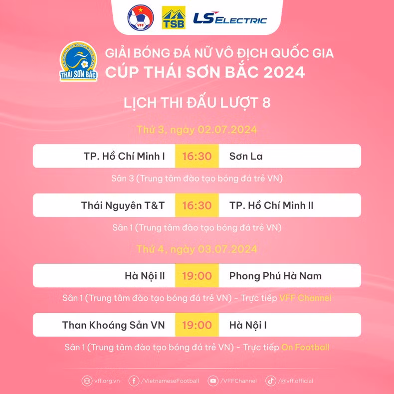 Lịch thi đấu lượt 8 giải bóng đá nữ vô địch quốc gia 2024. (Nguồn: VFF)