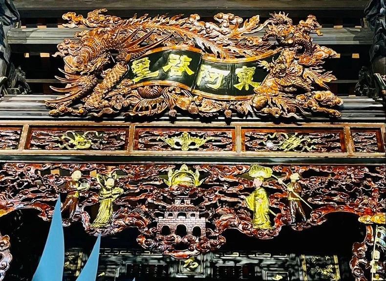 Vì thế, ông đã lên ý tưởng để các nghệ nhân thể hiện hình tượng của khoảng 30 vị thánh, thần ngay trên hệ thống cửa võng, kết hợp với hoa văn uốn lượn của mây trời để diễn tả thần thái của các ngài nơi bồng lai tiên cảnh. Ngước lên ban thờ, người đến phủ không chỉ cảm nhận được hình tượng các chư Tiên, chư Thần, chư Thánh qua các tượng được bày trên ban, mà còn thấy qua hệ thống cửa võng được thiết kế tinh xảo.