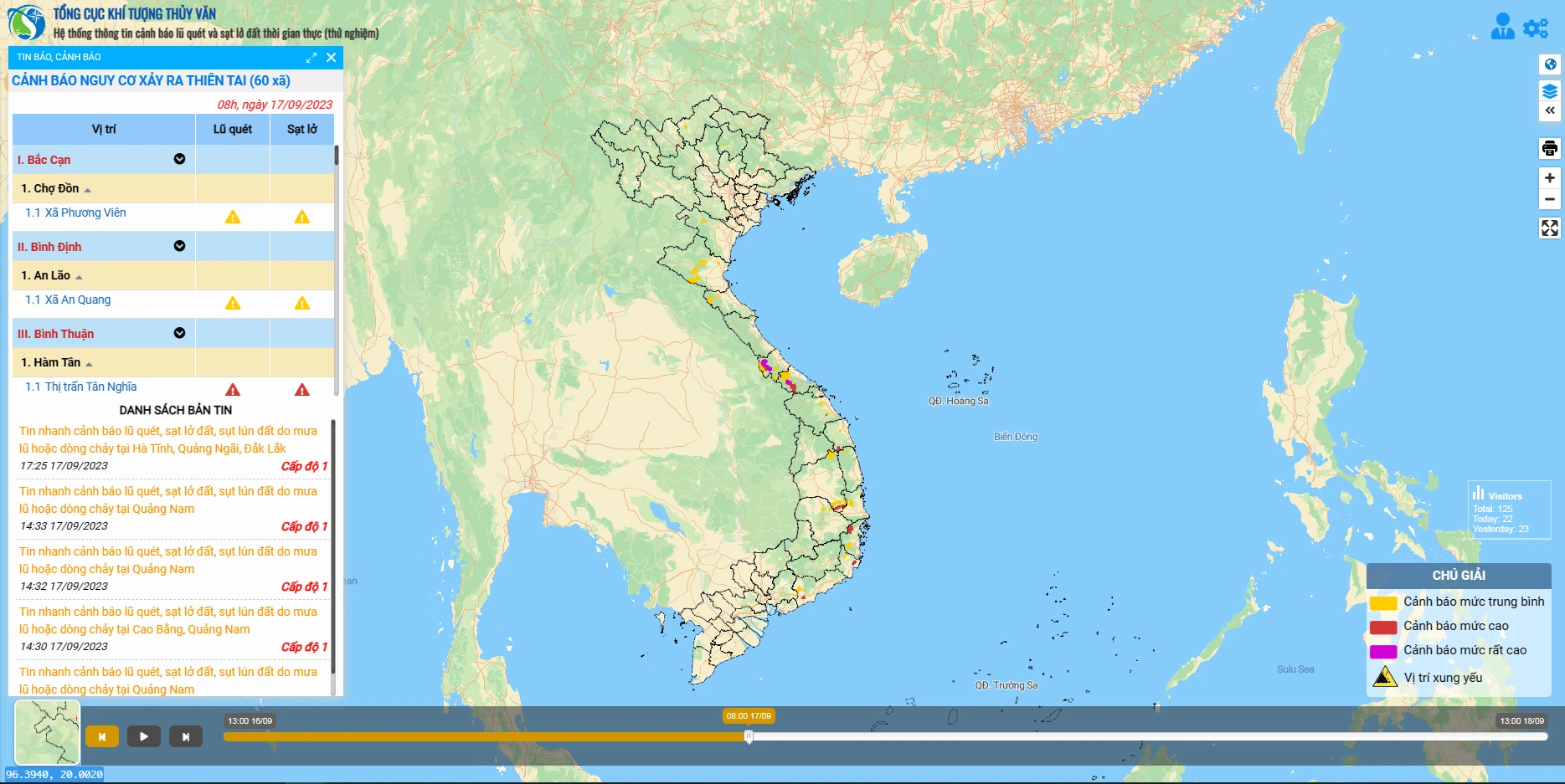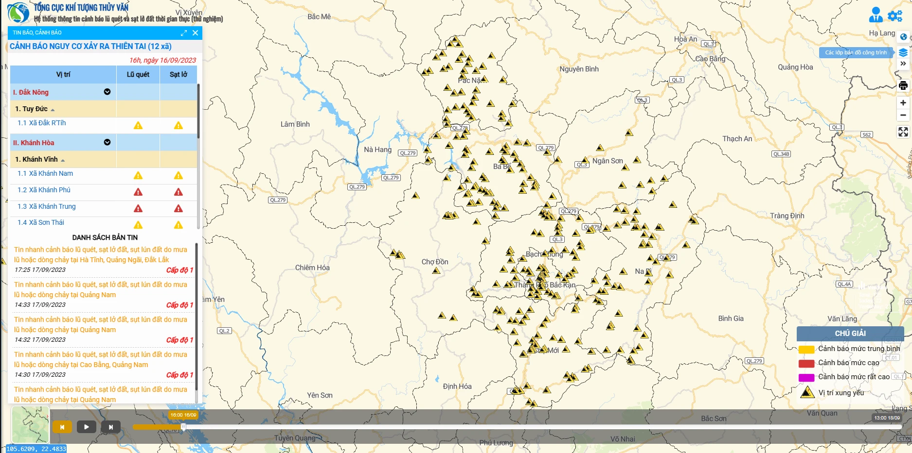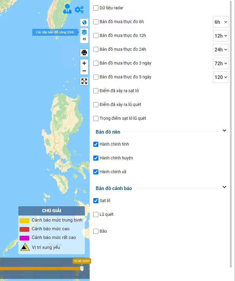 Giao diện của Hệ thống thông tin cảnh báo lũ quét, sạt lở đất.