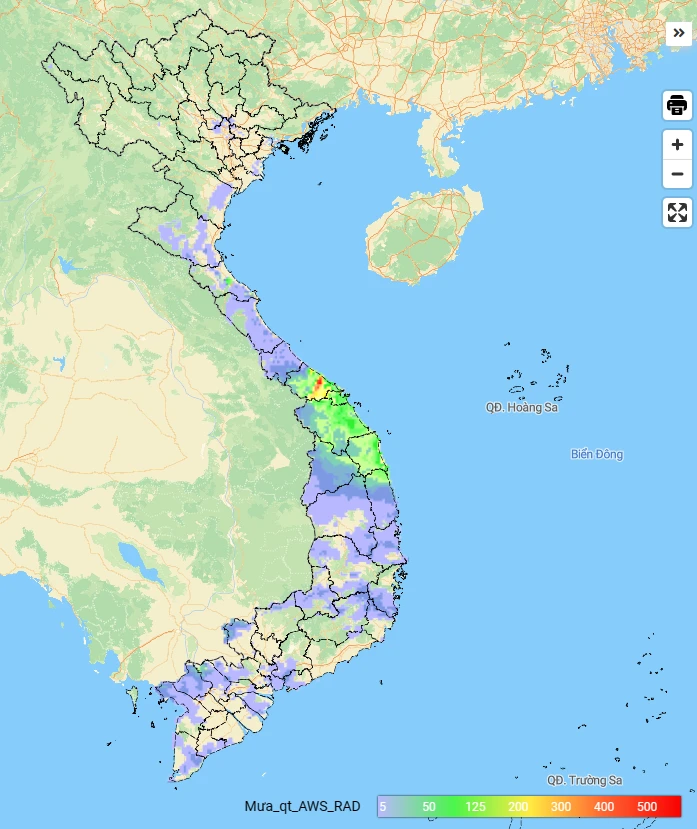 Ngoài ra, tại giao diện các lớp bản đồ còn được tích hợp các thông tin phản hồi ra đa thời tiết (tần suất cập nhật 10 phút/lần), dữ liệu bản đồ mưa thực đo 6 giờ, 12 giờ, 24 giờ, 3 ngày và 5 ngày đã qua, các dữ liệu về các vị trí đã xảy ra sạt lở đất, lũ quét, các vị trí xung yếu, trọng điểm nguy cơ xảy ra lũ quét, sạt lở đất và sơ lược thông tin dự báo về đường đi của bão/áp thấp nhiệt đới.