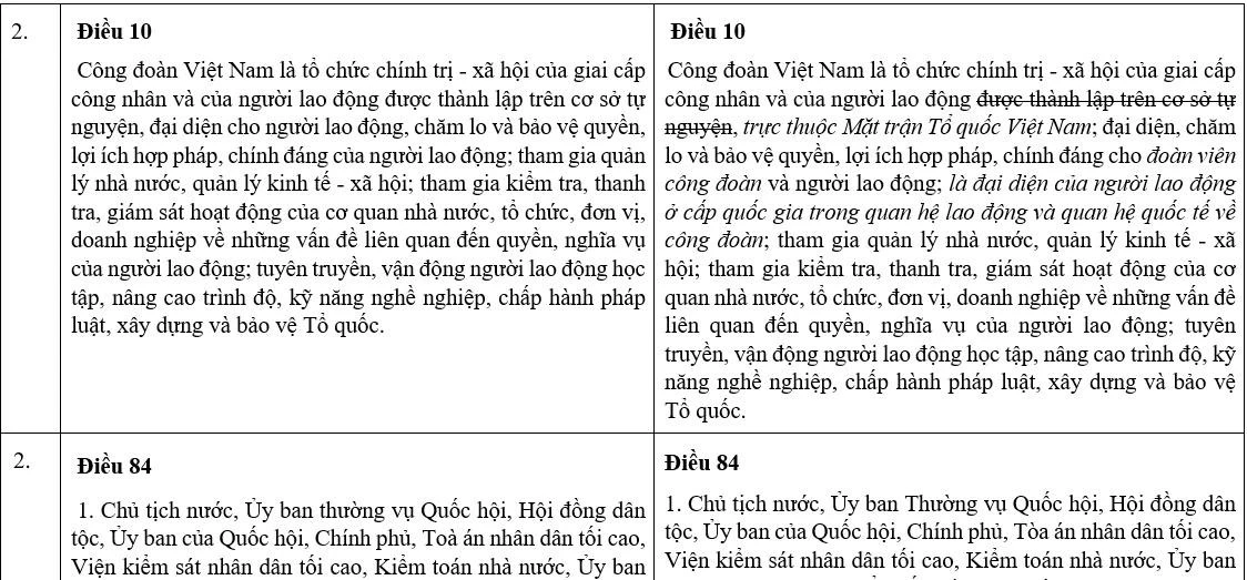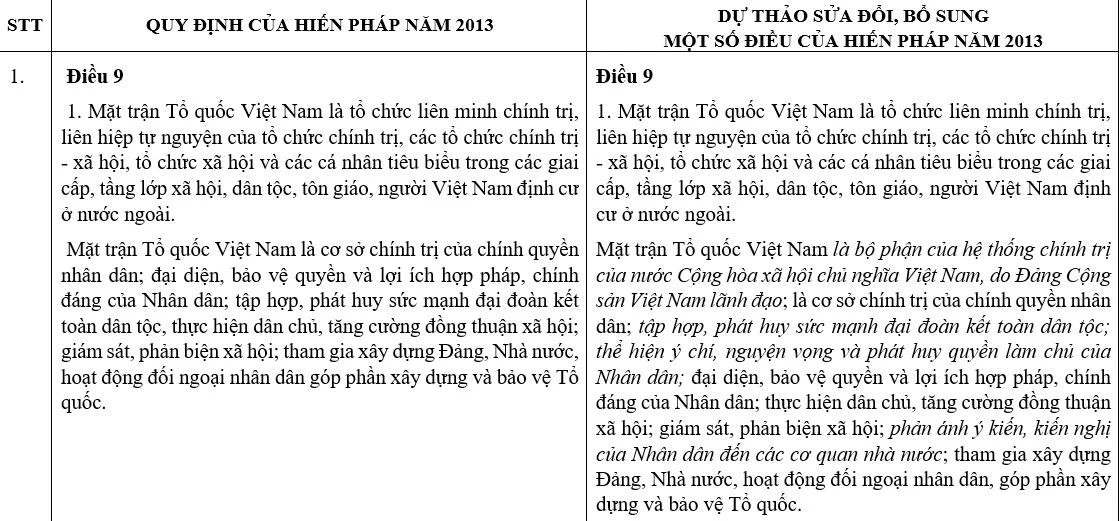Xin gửi tới quý độc giả Bản so sánh các nội dung dự kiến sửa đổi, bổ sung một số điều của Hiến pháp năm 2013 với quy định hiện hành của Hiến pháp.