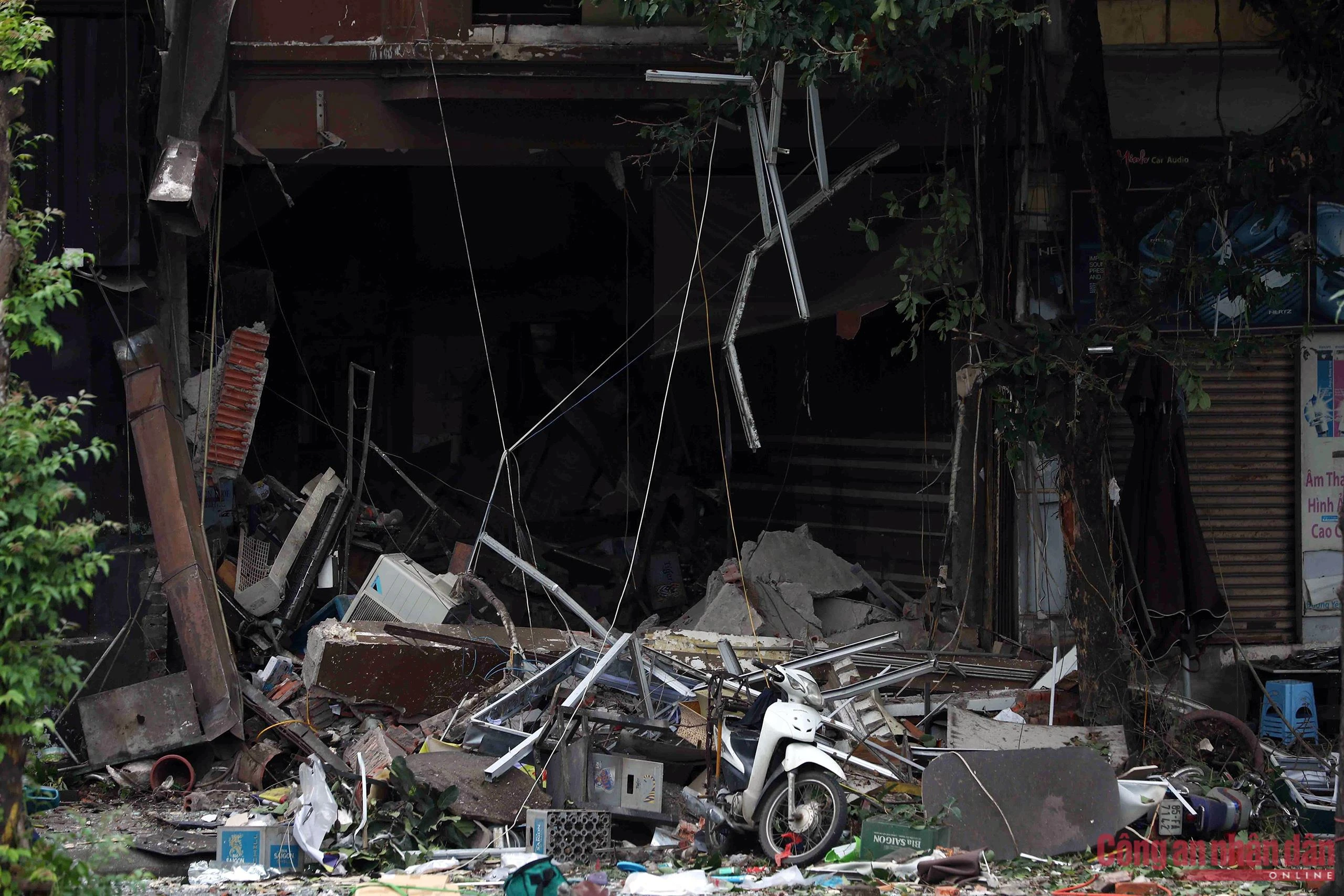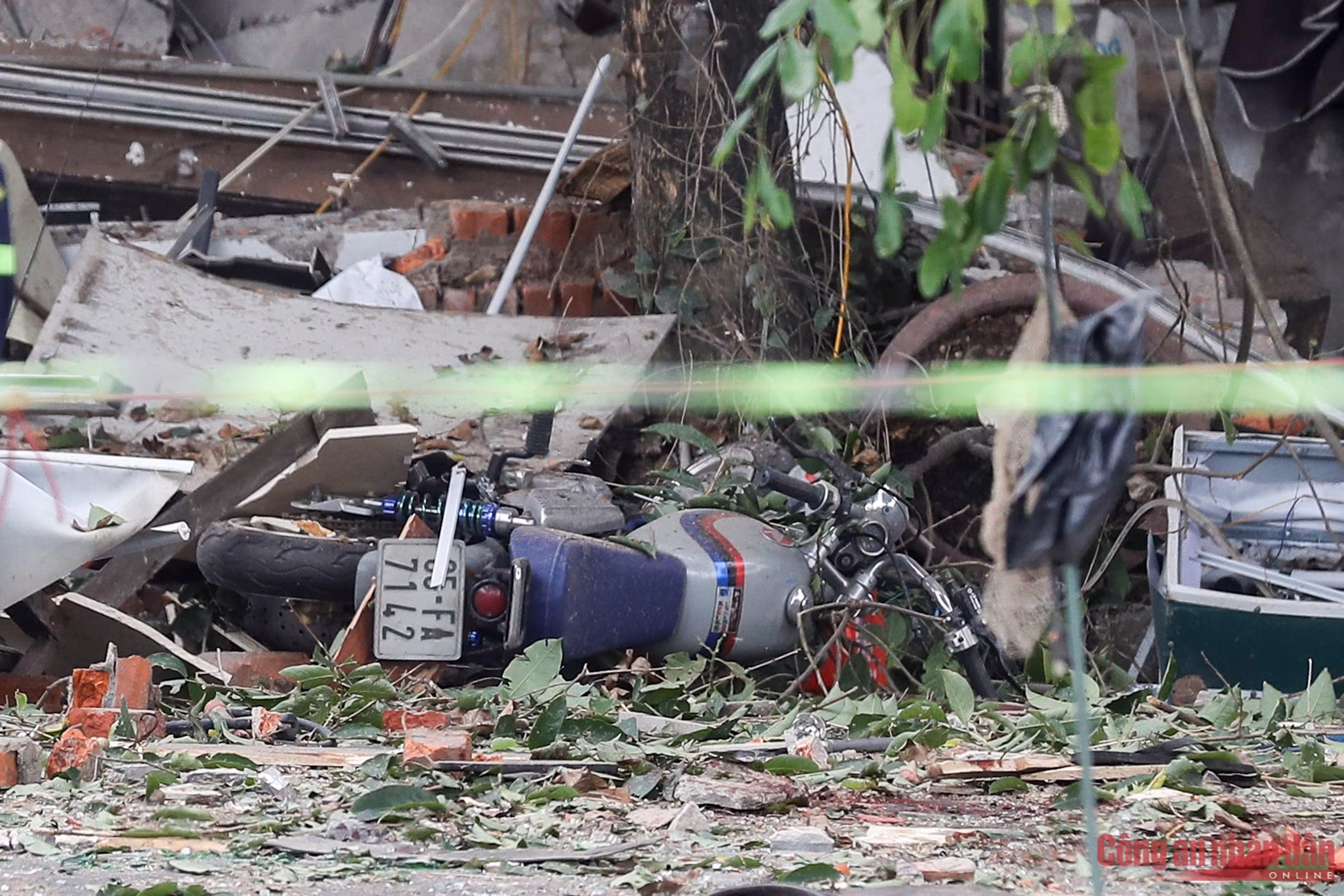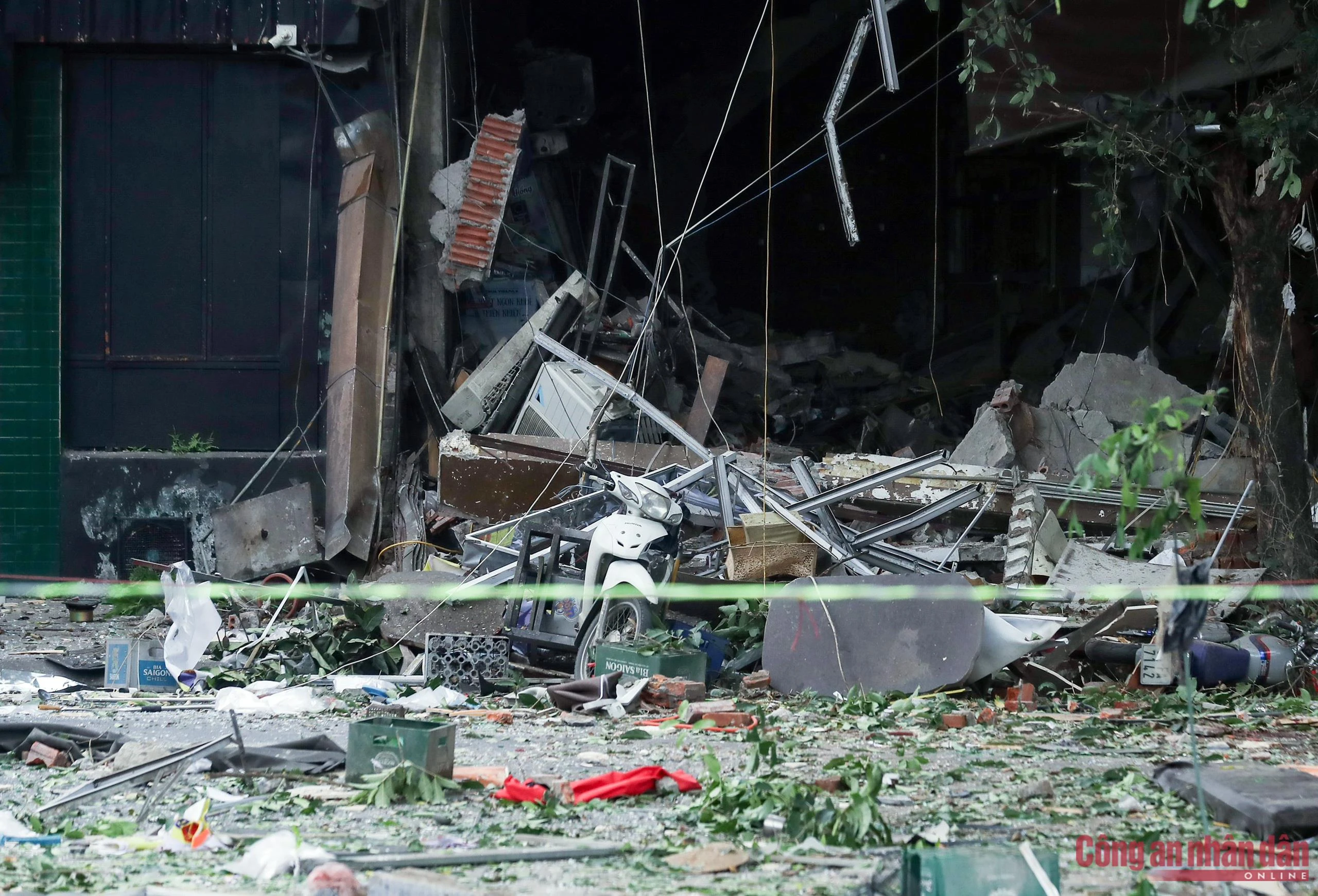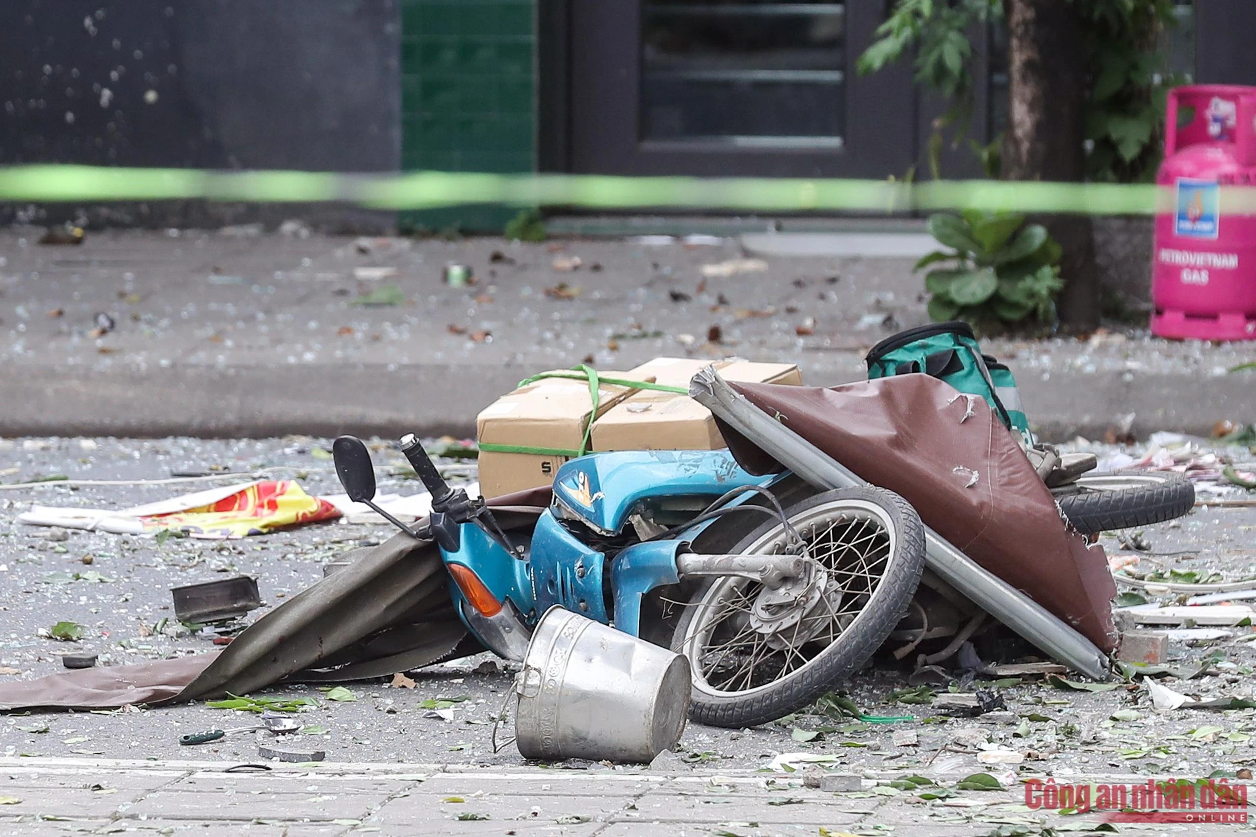 Sức ép của vụ nổ khiến toàn bộ mặt tiền của ngôi nhà trên bị biến dạng, đường dây điện chạy qua cũng trũng xuống, cây cối xung quanh gẫy cành chắn ngang đường. Ngoài ra, tại hiện trường cũng ghi nhận nhiều xe máy bị hư hỏng.