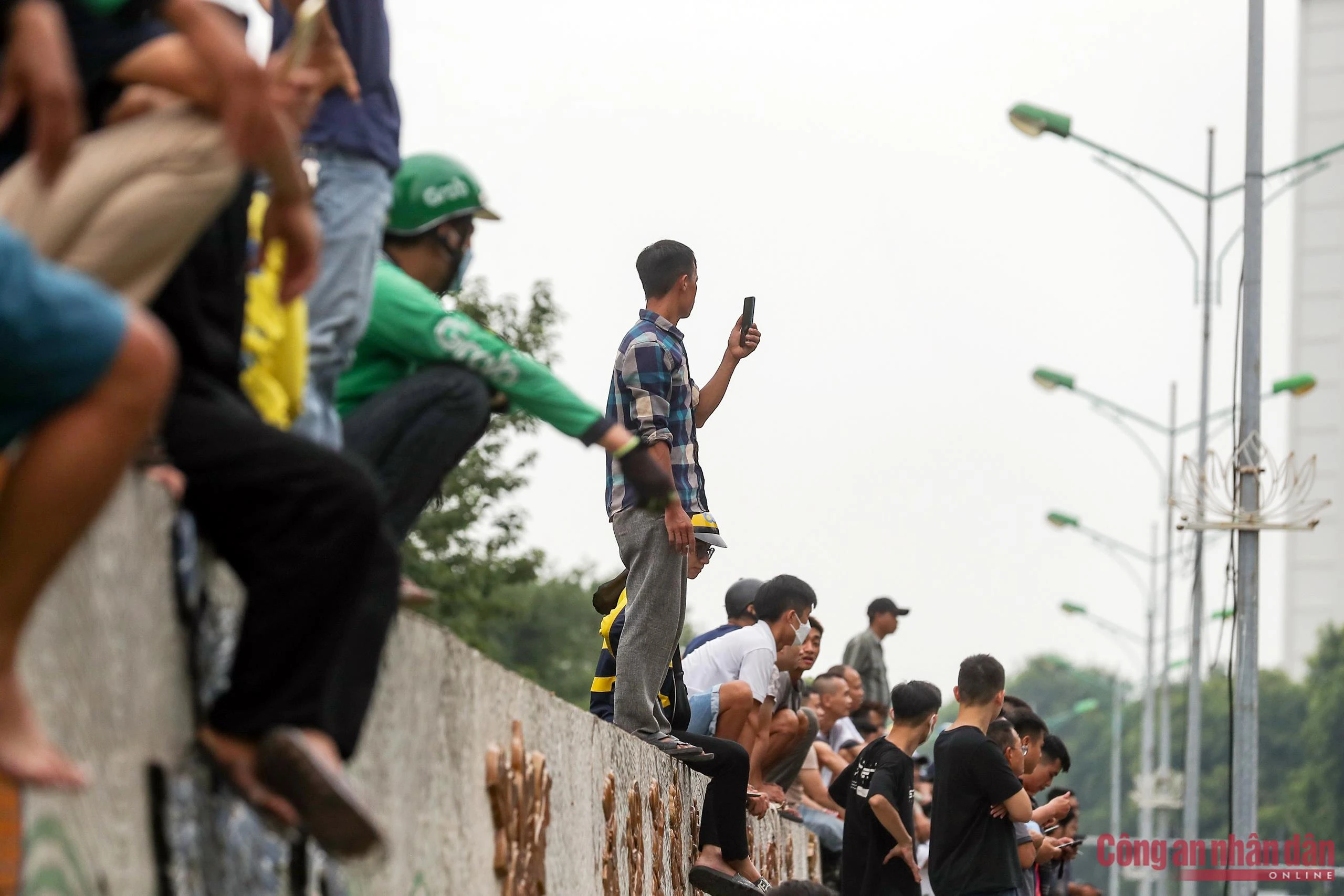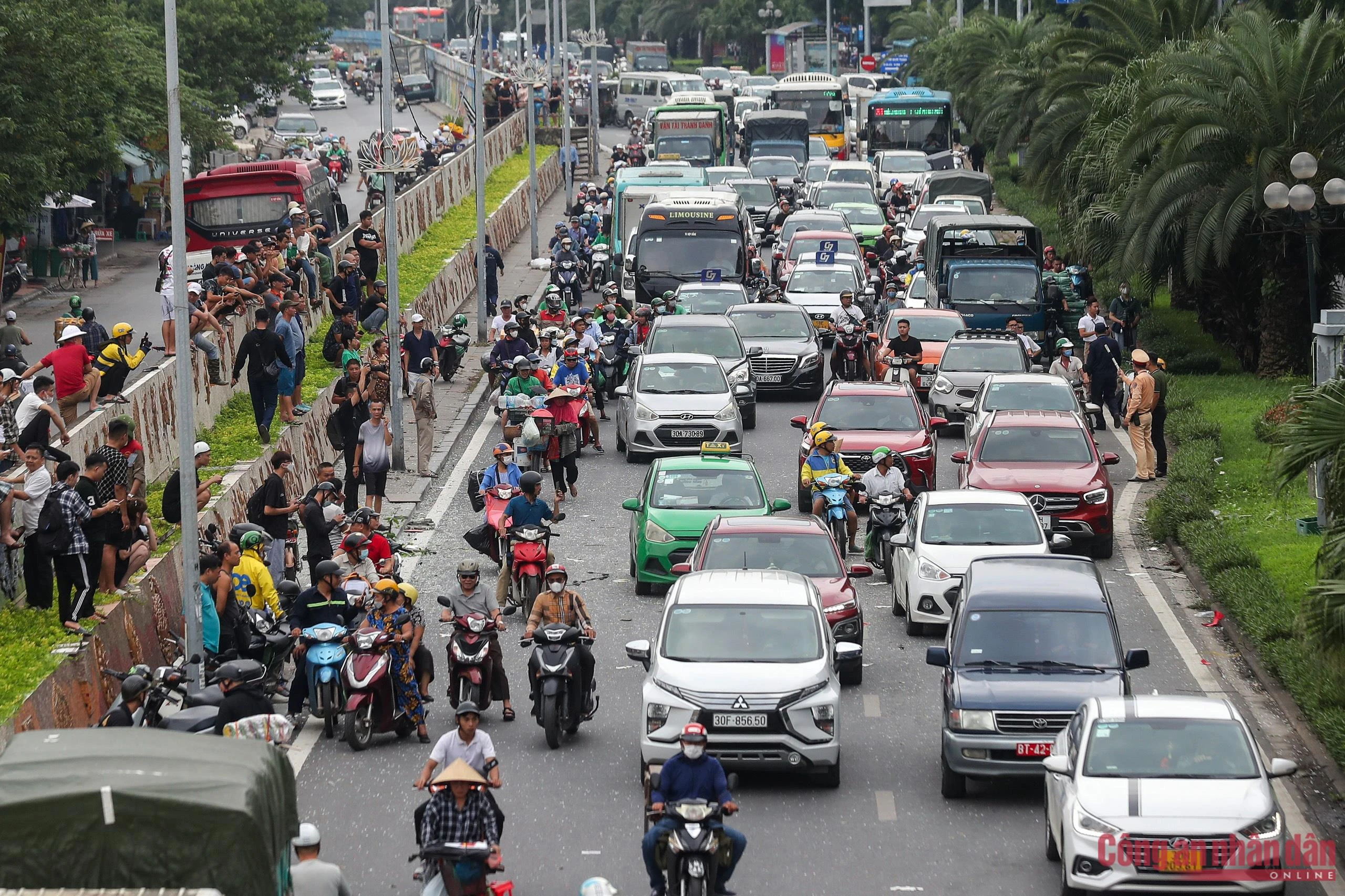 Rất đông người dân hiếu kỳ theo dõi vụ việc từ xa.