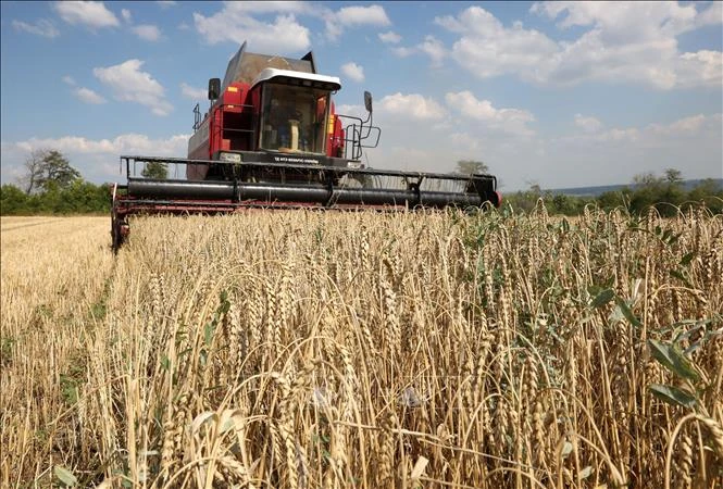 Nông dân thu hoạch lúa mì trên cánh đồng gần Kramatorsk, Ukraine ngày 4/8/2023.
