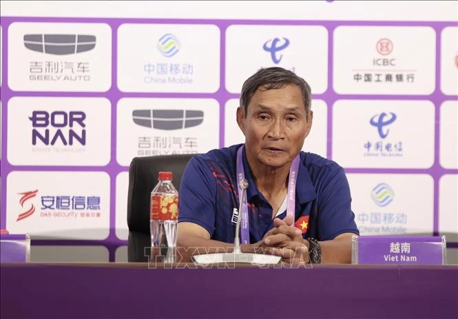 HLV Mai Đức Chung trong cuộc họp báo sau trận Việt Nam - Nhật Bản.