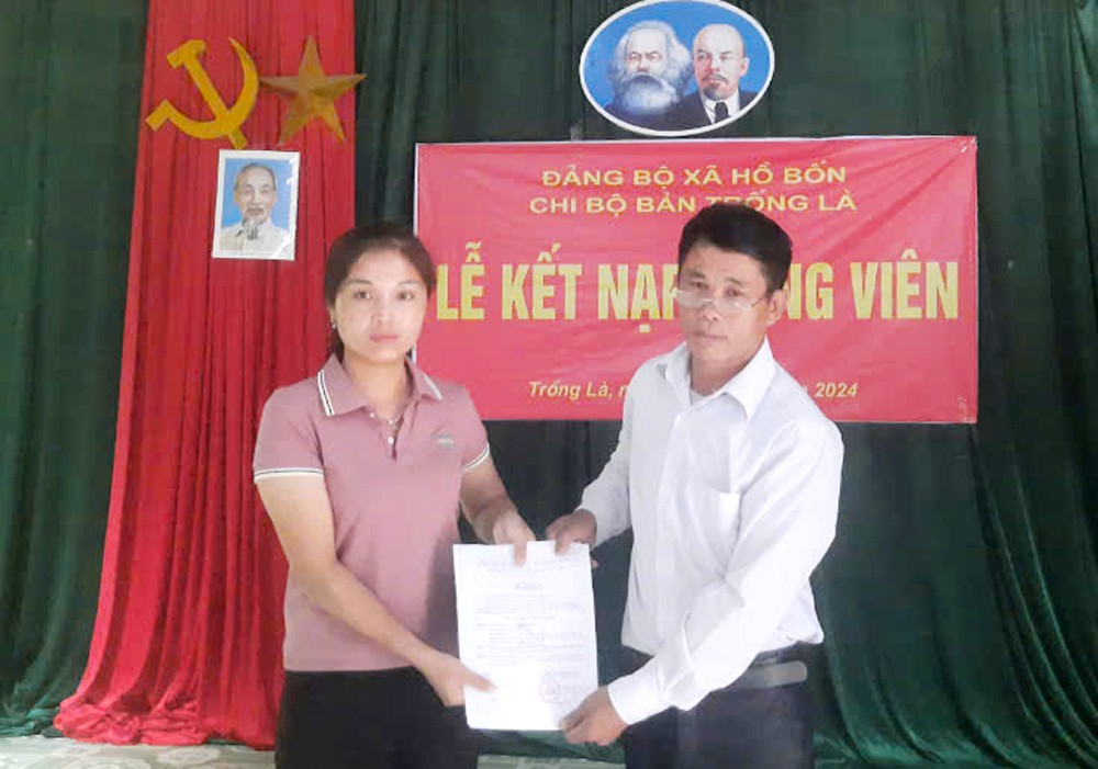 Chi bộ Trống Là làm lễ kết nạp đảng viên mới.