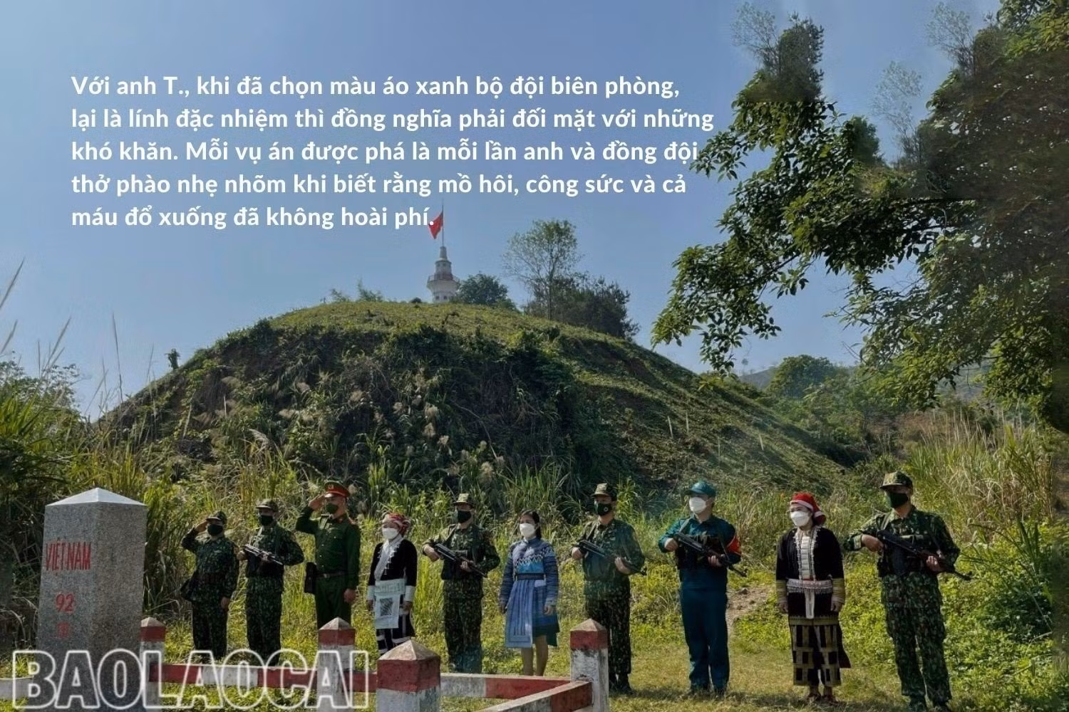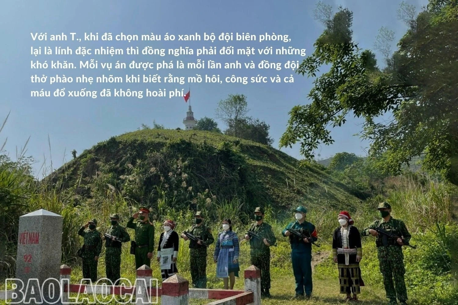Cùng Đội Đặc nhiệm với anh Đ., Đại úy H. V. T. cũng có gần chục năm gắn bó với biên giới Lào Cai, tham gia nhiều chuyên án, bắt giữ các tội phạm nguy hiểm, thường xuyên đối mặt với hiểm nguy. Thông minh, xông xáo và dũng cảm, Đại úy H.V.T. luôn được cấp trên và đồng đội tin tưởng, lựa chọn tham gia đấu tranh nhiều chuyên án lớn. Với anh T., khi đã chọn màu áo xanh bộ đội biên phòng, lại là lính đặc nhiệm thì đồng nghĩa phải đối mặt với những khó khăn. Mỗi vụ án được phá là mỗi lần anh và đồng đội thở phào nhẹ nhõm khi biết rằng mồ hôi, công sức và cả máu đổ xuống đã không hoài phí.