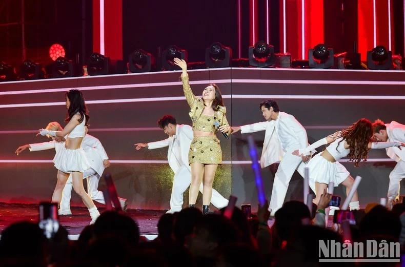 Ca sĩ Mỹ Tâm, một trong những nghệ sĩ được mong đợi nhất chương trình với các liên khúc "Anh chưa biết đâu-Vì em quá yêu anh-Nụ hôn bất ngờ-Người hãy quên em đi", "Vì em tất cả" và "Nhé anh-Đôi cánh tình yêu-Họa mi tóc nâu". "Họa mi tóc nâu" còn vui vẻ giao lưu với các fan và bày tỏ tình yêu với Hà Nội, với sự nhiệt tình của hàng chục nghìn khán giả Hà Nội đội gió rét đứng chờ và lắng nghe, cổ vũ cho từng tiết mục của chương trình.