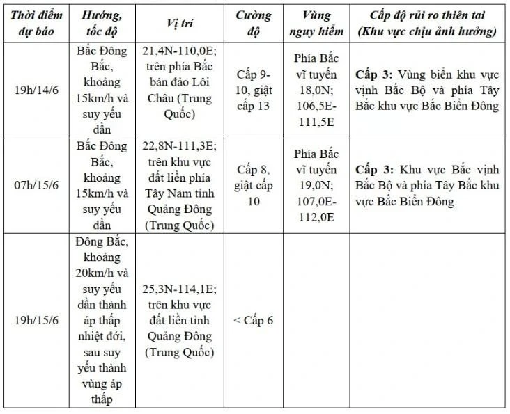 Tàu thuyền trong vùng nguy hiểm có nguy cơ gặp dông, lốc, gió mạnh, sóng lớn.