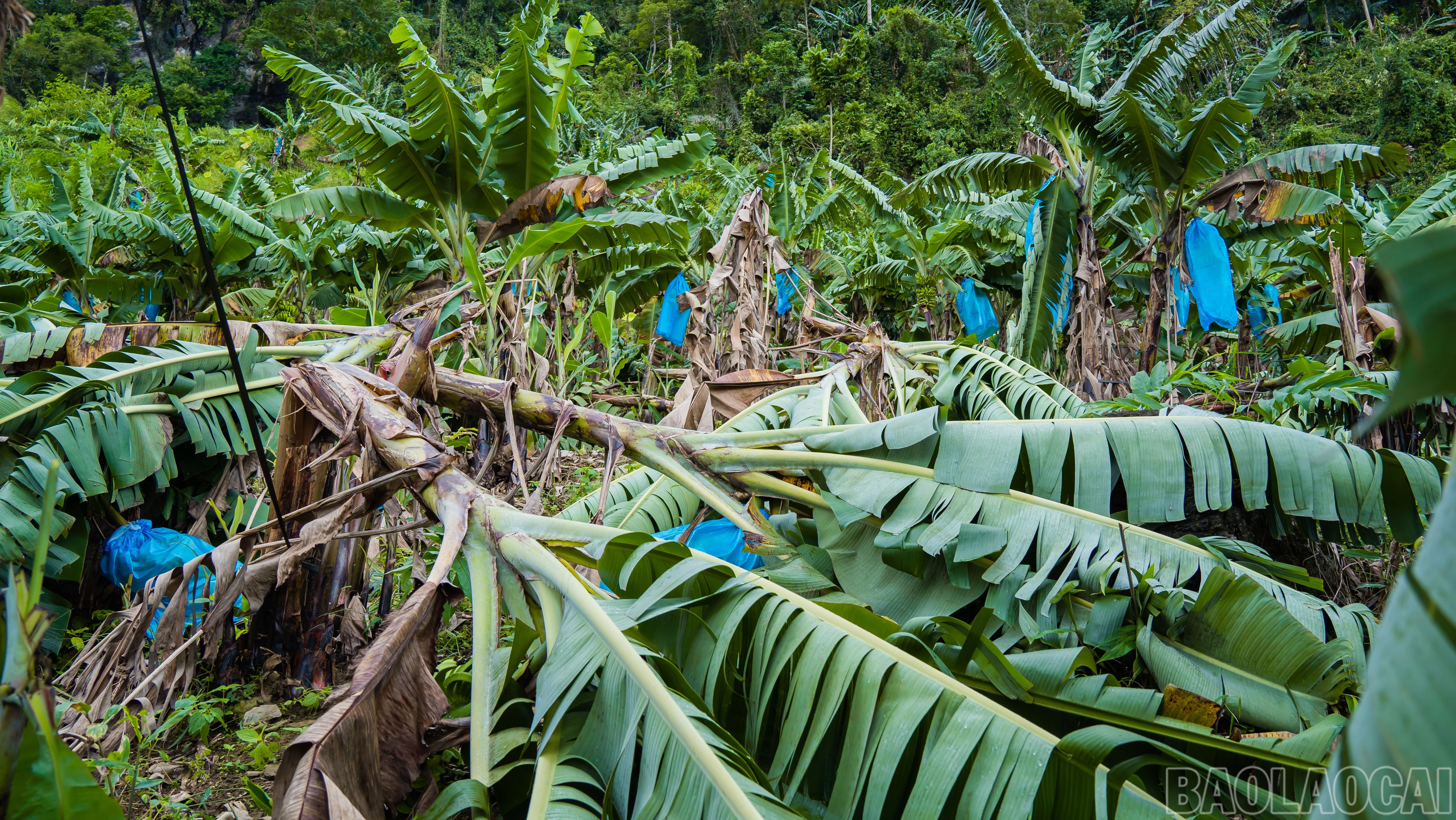 Hơn 5 ha chuối của 33 hộ dân bị gãy đổ hoàn toàn.