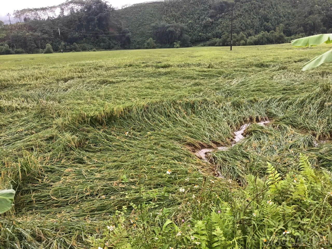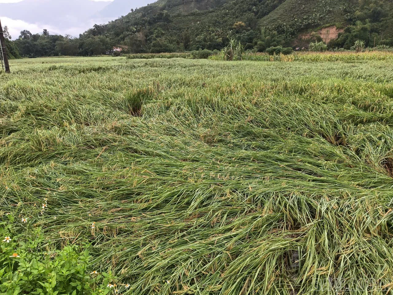 * Xã Nghĩa Đô: Hơn 28 ha diện tích cây lúa đến kỳ thu hoạch bị gãy đổ do mưa dông