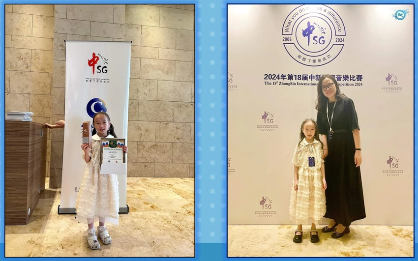 Học sinh lớp 1 Trần Thanh Mai, trường Tiểu học Thành Công A giành giải nhất tại cuộc thi Âm nhạc quốc tế Trung Quốc - Singapore 2024.