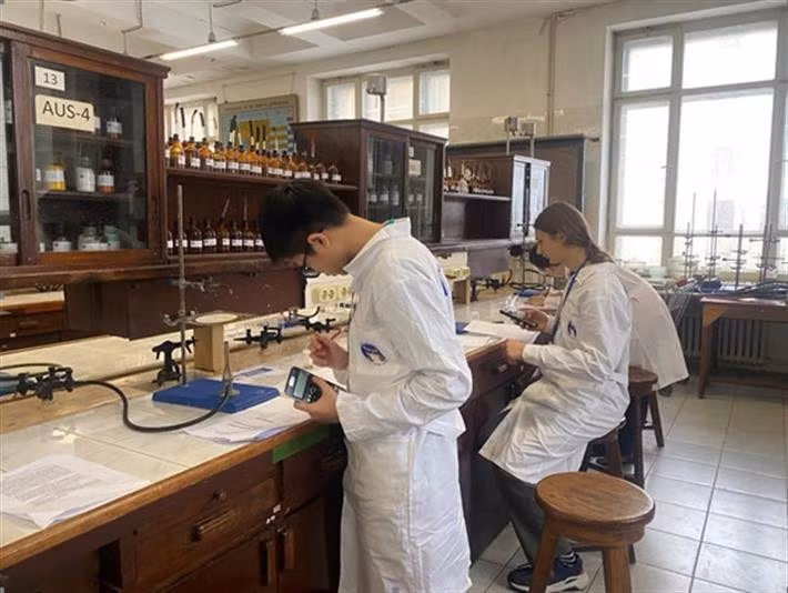 Thí sinh Việt Nam đang thực hiện dự án trong phòng thí nghiệm.