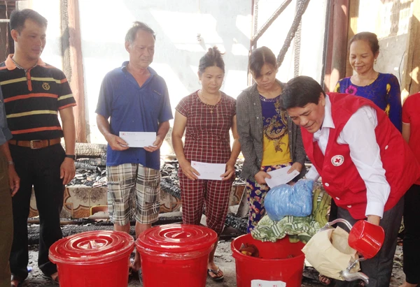 LCĐT - Ngày 13/7, Hội Chữ thập đỏ tỉnh phối hợp với Hội Chữ thập đỏ huyện Bảo Yên tổ chức trao quà cho 4 gia đình bị hỏa hoạn tại xã Việt Tiến và thị trấn Phố Ràng (ảnh dưới).
