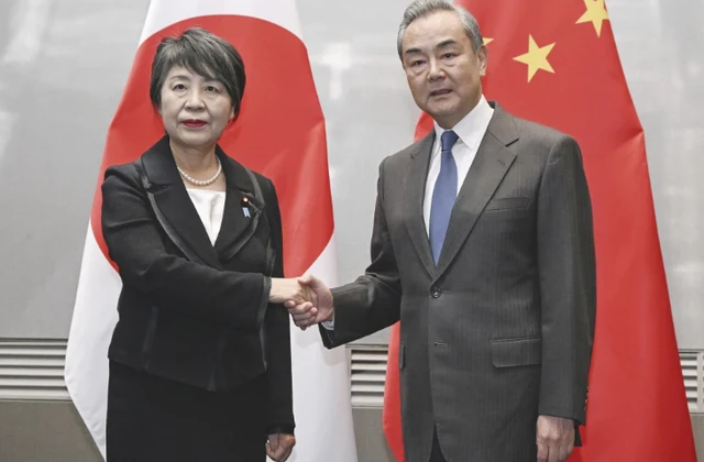 Bộ trưởng Ngoại giao Trung Quốc Vương Nghị hội đàm với người đồng cấp Nhật Bản Yoko Kamikawa.