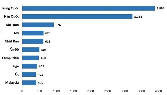 Đáng chú ý, Trung Quốc và Hàn Quốc là hai thị trường đóng góp gần 50% tổng số khách quốc tế đến Việt Nam. Trung Quốc hiện là thị trường gửi khách lớn nhất của Việt Nam với hơn 3,89 triệu lượt (chiếm 25,2%); Hàn Quốc xếp ở vị trí thứ hai với trên 3,23 triệu lượt (chiếm 21%).