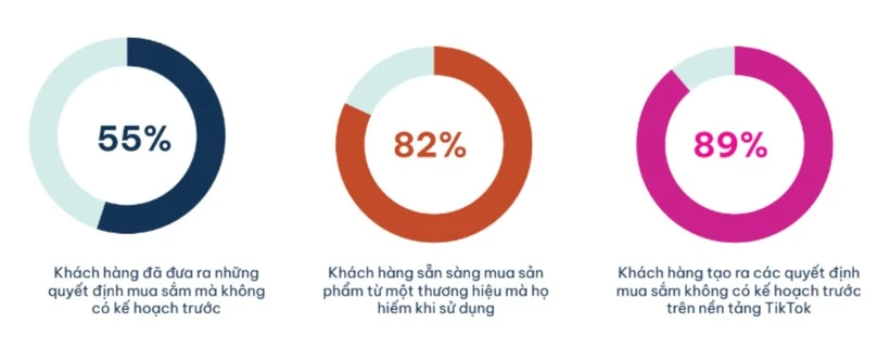Nghiên cứu được khảo sát trong khu vực APAC về hoạt động mua sắm giải trí chỉ ra rằng 82% khách hàng sẵn sàng mua sắm sản phẩm từ một thương hiệu mà họ hiếm khi sử dụng sau khi xem video giới thiệu trên nền tảng Tiktok. Ngoài ra, 1/3 người dùng mong muốn trải nghiệm hành trình mua sắm kết hợp yếu tố giải trí, thư giãn.