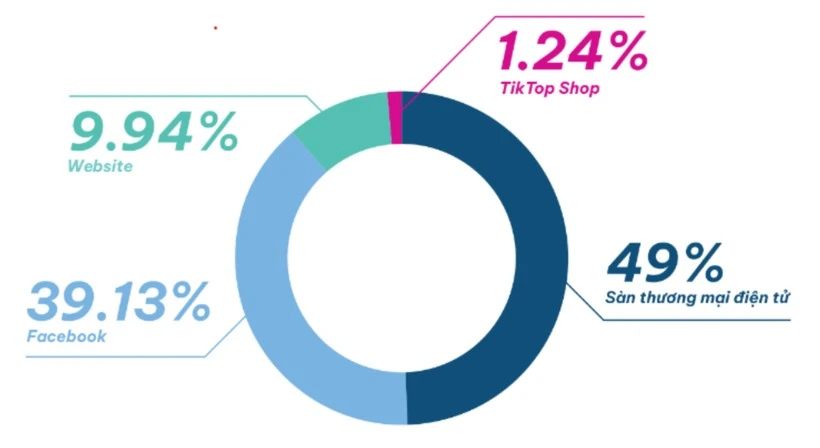 Trong năm 2022, Việt Nam có đến 74,8% người dùng tham gia mua sắm trực tuyến, hầu hết trong số họ đều mua sắm đa kênh. Trong đó, các sàn thương mại điện tử chiếm 78%, mạng xã hội chiếm 42% và các ứng dụng điện thoại chiếm 47%. Đặc biệt, 80% marketer cho biết người dùng có xu hướng mua sắm trực tiếp qua mạng xã hội thay vì website hoặc bên thứ ba.