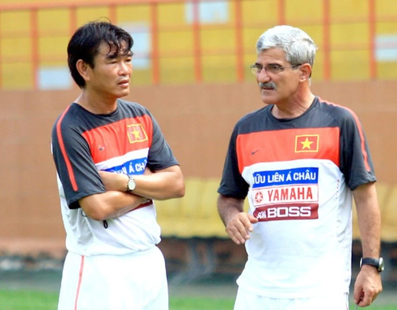 Huấn luyện viên Calisto tái ngộ các học trò cùng trợ lý cũ Phan Thanh Hùng trong trận đấu thiện nguyện sắp tới.