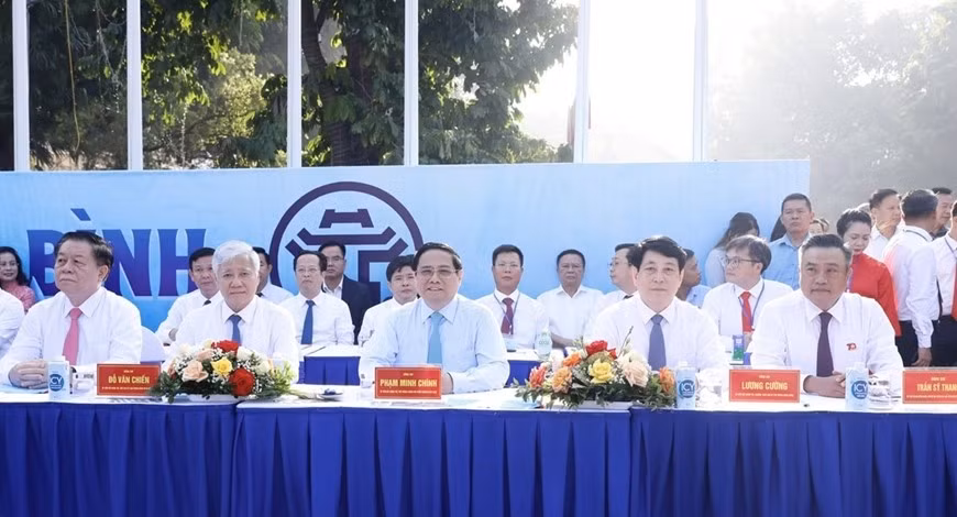 Các đồng chí lãnh đạo Trung ương và thành phố Hà Nội dự ngày hội.
