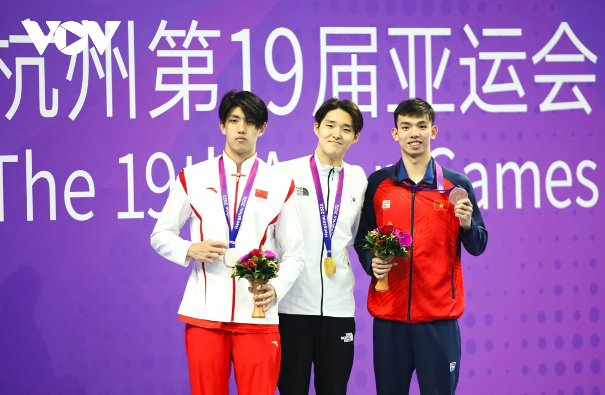 Tối ngày 28/9, kình ngư Nguyễn Huy Hoàng tham dự chung kết nội dung 800m tự do nam môn Bơi ở ASIAD 19. Với thành tích 7 phút 51 giây 44, vận động viên của Việt Nam giành về tấm HCĐ. Không những vậy, thành tích trên còn giúp Nguyễn Huy Hoàng vượt chuẩn A Olympic và có suất tham dự Olympic Paris 2024.
