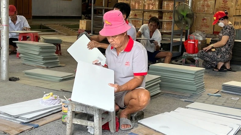 “Phải hom rồi mài, hom rồi mài, ít nhất ba, bốn lần như vậy thì nền mới mịn đẹp. Nhìn vậy chứ đâu có dễ, cực lắm”, ông Trần Hữu Chiến liên tục nhấn mạnh.